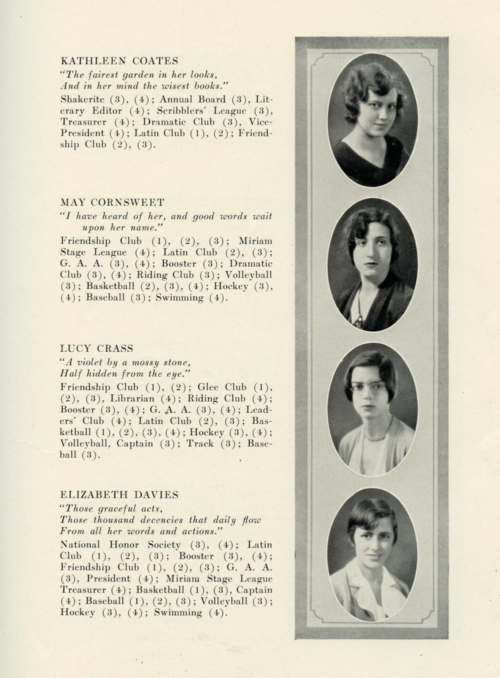 1930 Shaker Heights High School, Page 21: Kathleen Coates, May Cornsweet, Lucy Crass, Elizabeth Davies.