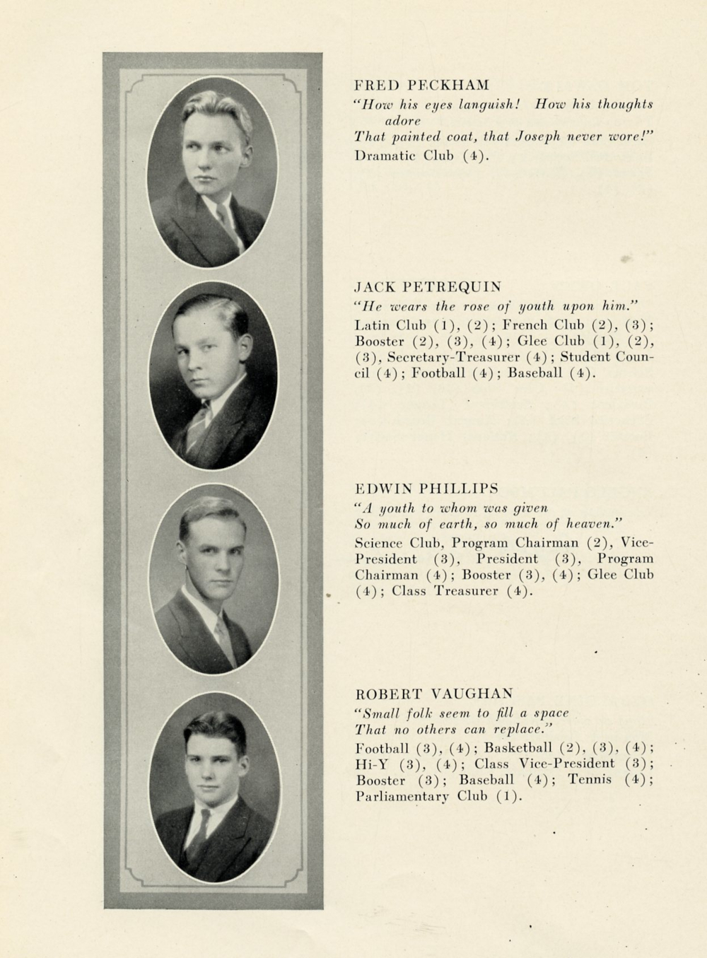 1930 Shaker Heights High School, Page 36: Fred Peckham, Jack Petrequin, Edwin Phillips, Robert Vaughan.