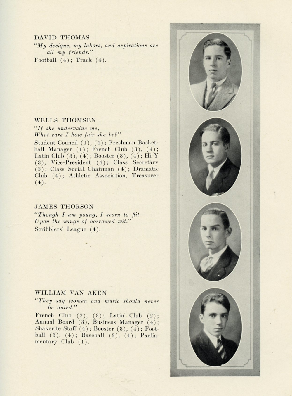 1930 Shaker Heights High School, Page 43: David Thomas, Wells Thomsen, James Thorson, William Van Aken.