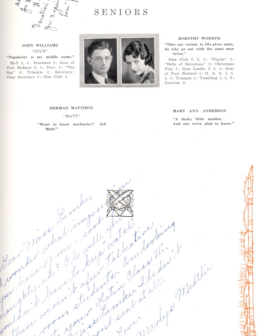 1932 Menomonie High School, Page 27: John Williams, Dorothy Woerth, Herman Mattison, Mary Ann Anderson.