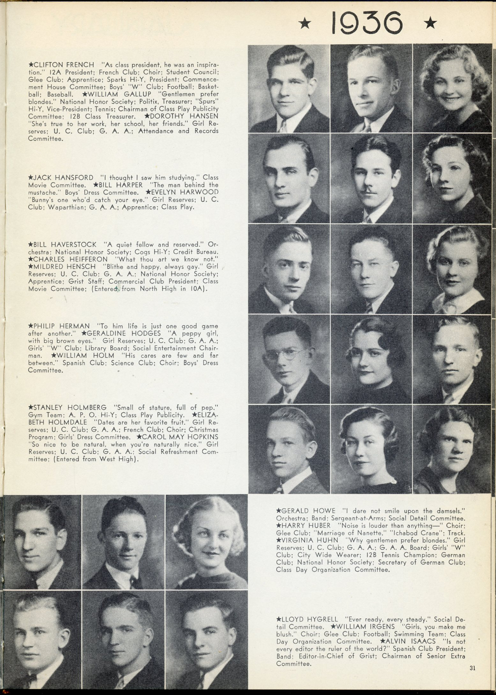 1936 Washburn High School Yearbook Page 31: