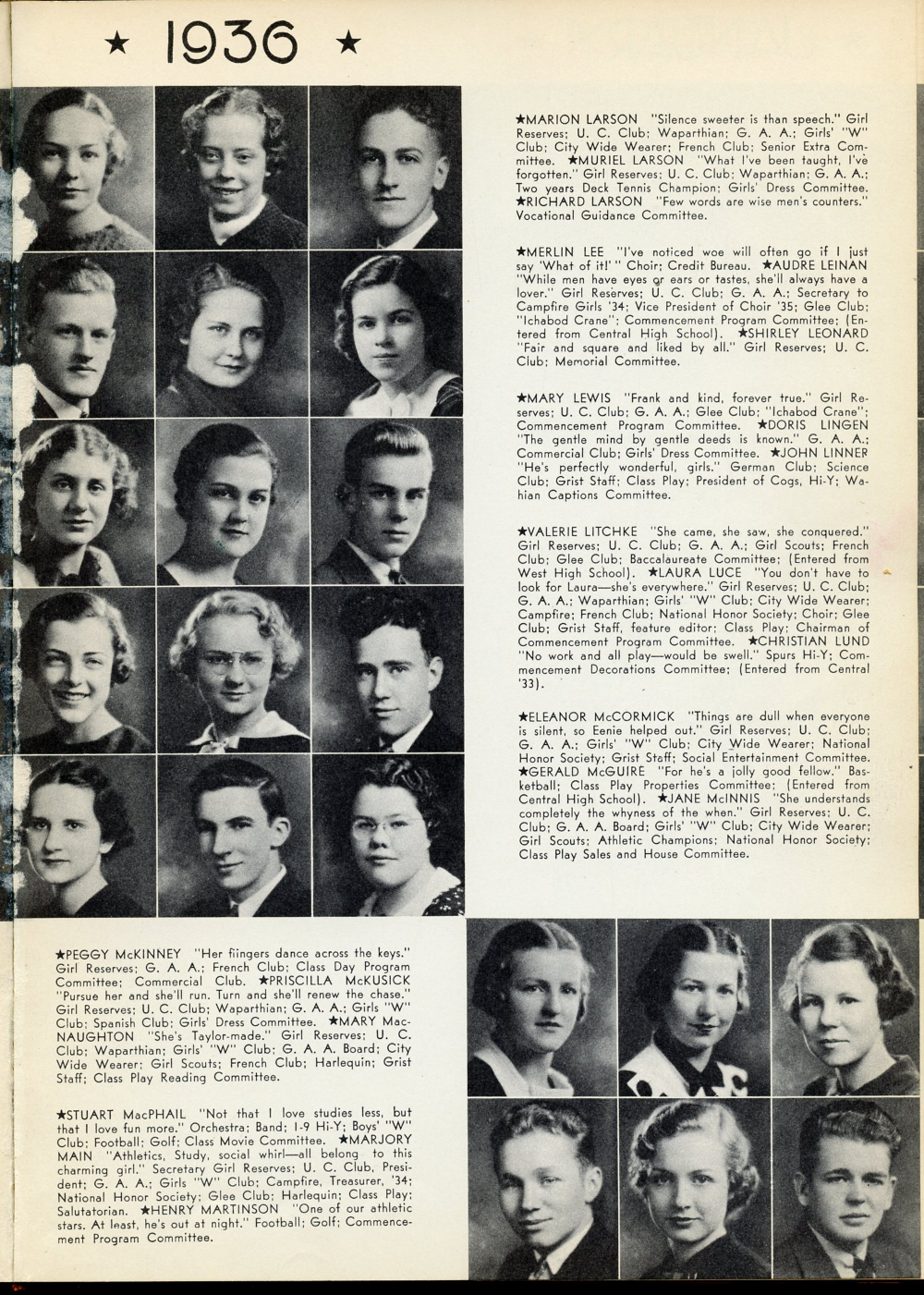 1936 Washburn High School Yearbook Page 33: