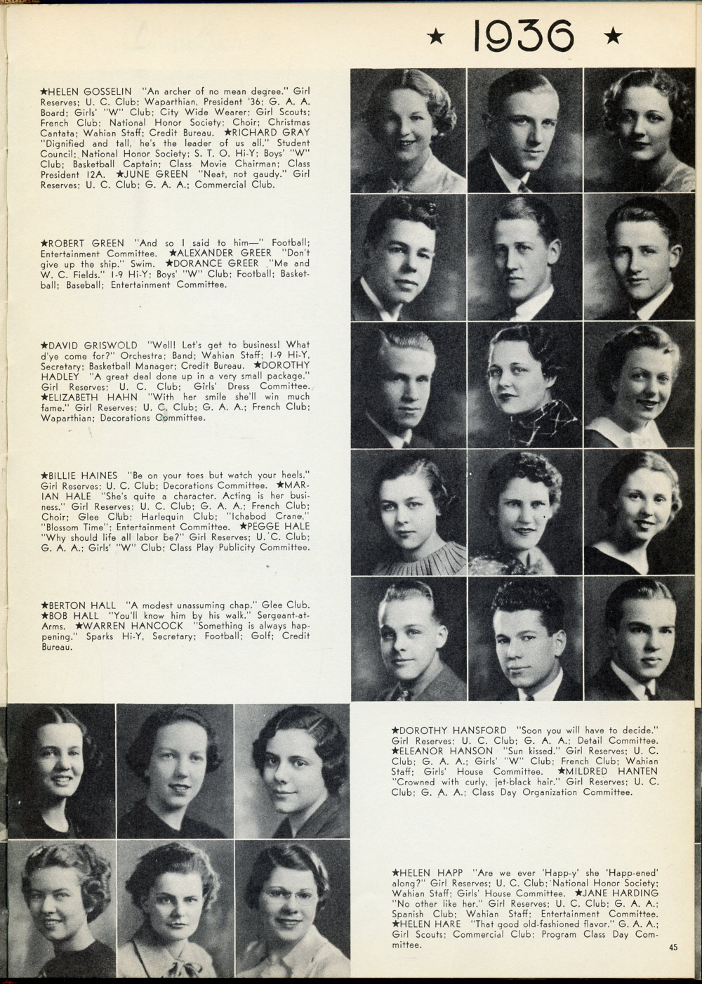 Helen Gosselin, Richard Gray, June Green, Robert Green, Aleander Greer, Dorance Greer, David Griswold, Dorothy Hadley, Elizabeth Hahn,