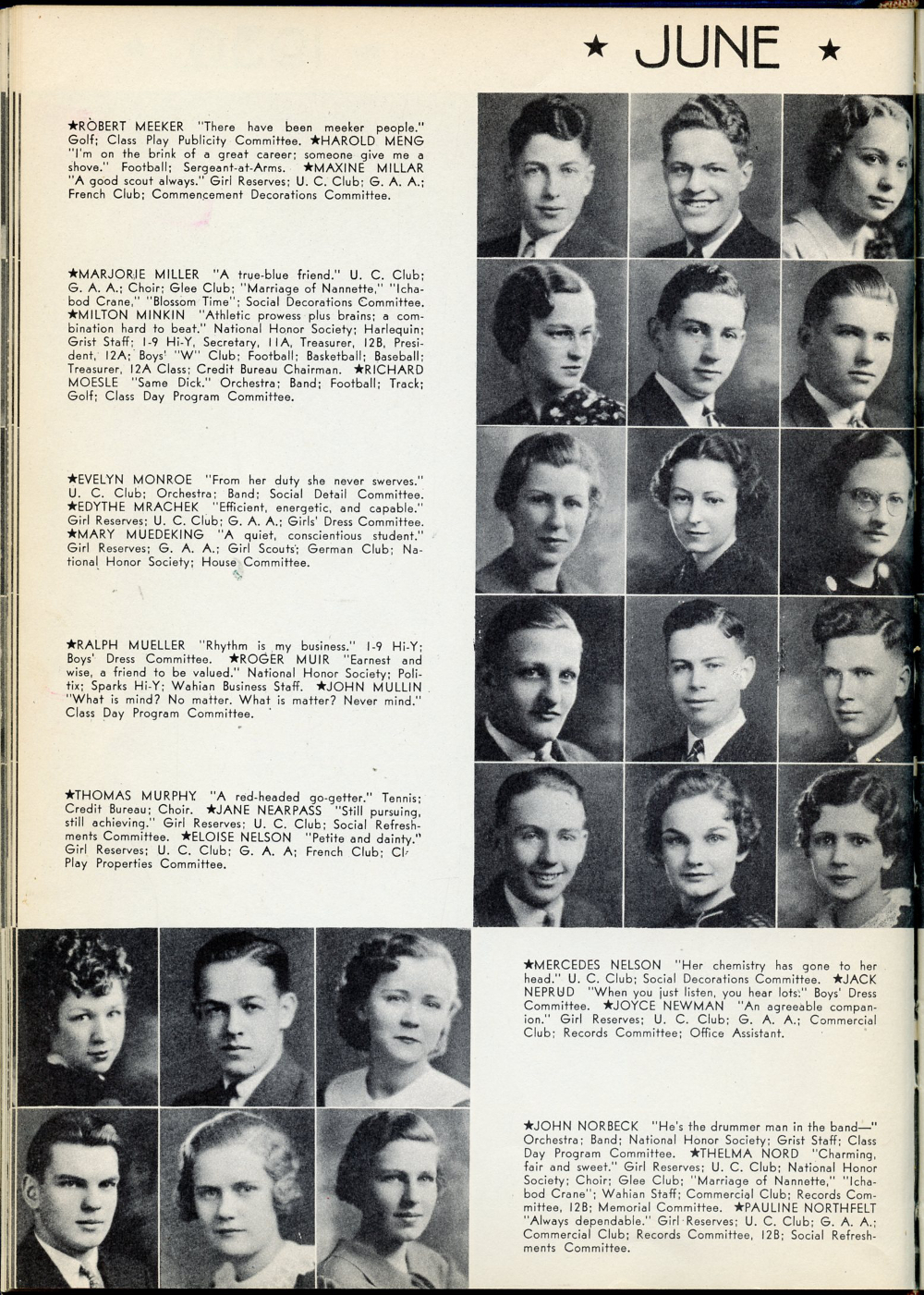 Robert Meeker, Harold Meng, Maxine Millar, Marjorie Miller, Milton Minkin, Richard Moesle, Evelyn Monroe, Edythe Mrachek, Mary Muedeking,