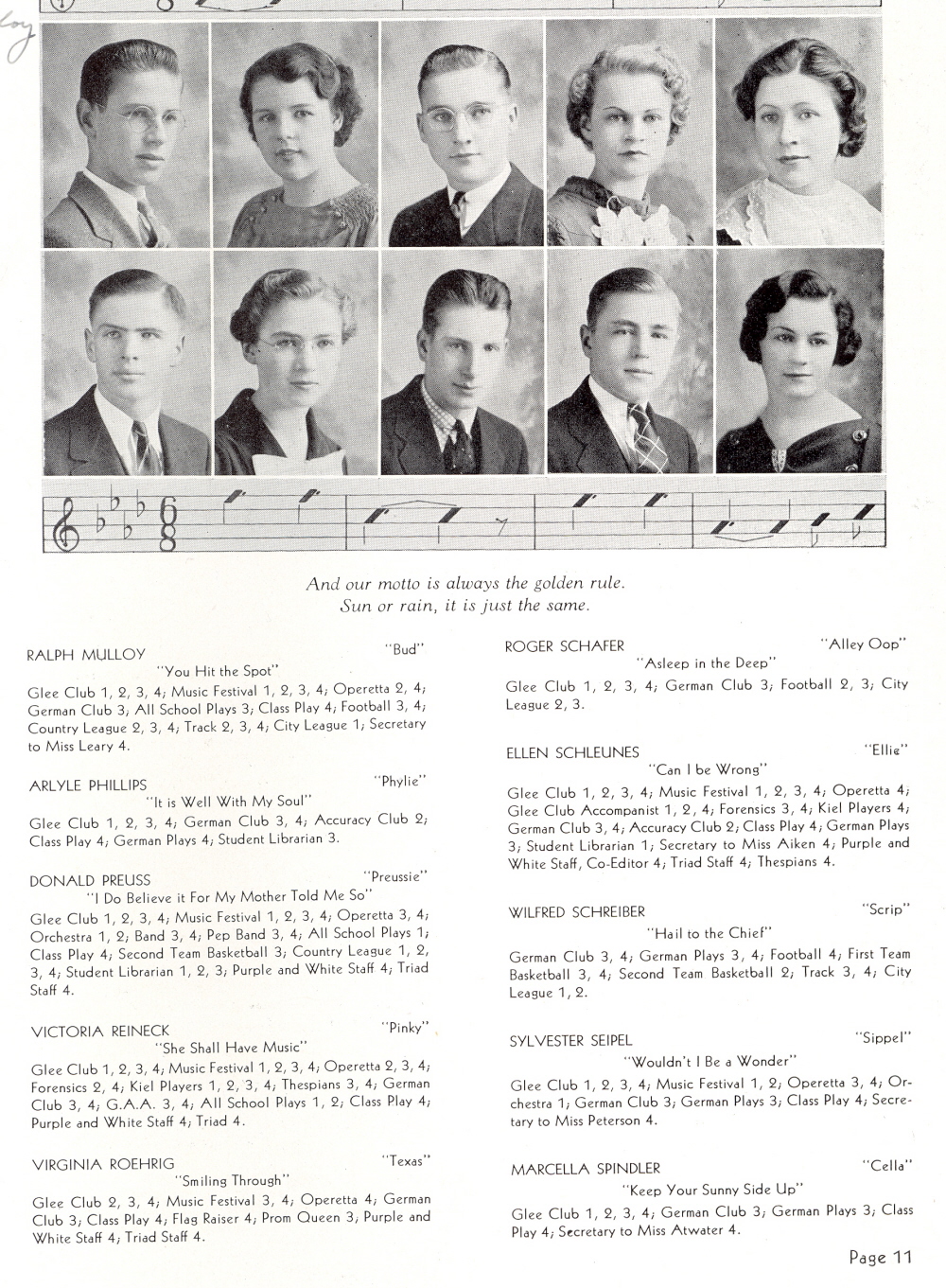 1937 Kiel High School, Page 11: Ralph Mulloy, Arlyle Phillips, Donald Preuss, Victoria Reineck, Virginia Roehrig, Roger Schafer, Ellen Schleunes, Wilfred Schreiber, Sylvester Seipel, Marcella Spindler.