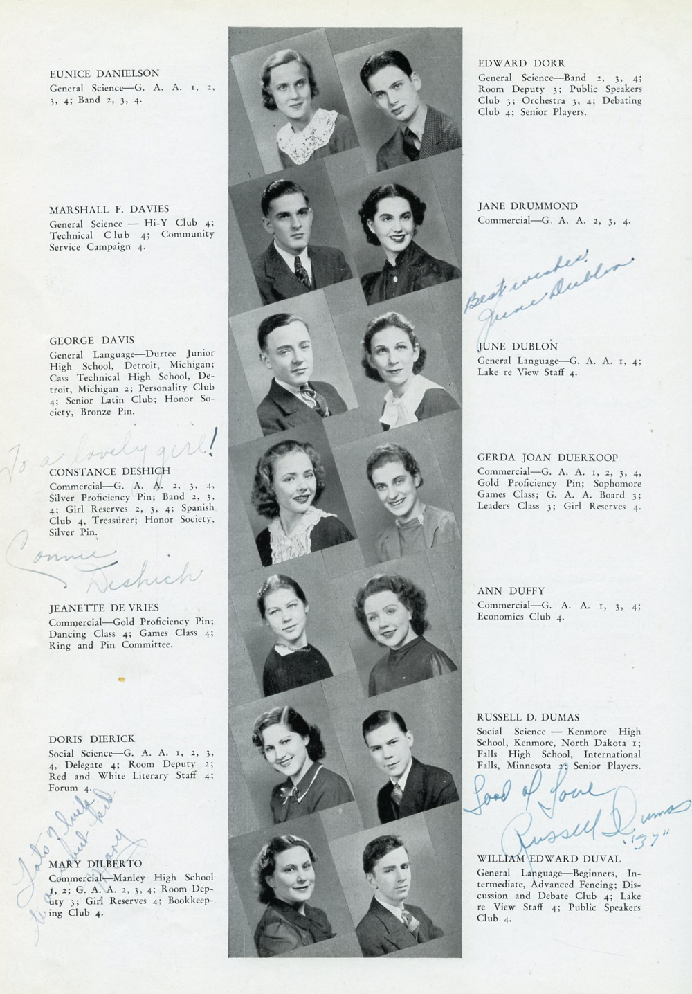 180: Eunice Danielson, Marshall F. Davies, George Davis, Constance Deshich, Jeanette De Vries, Doris Dierick, Mary Dilberto,