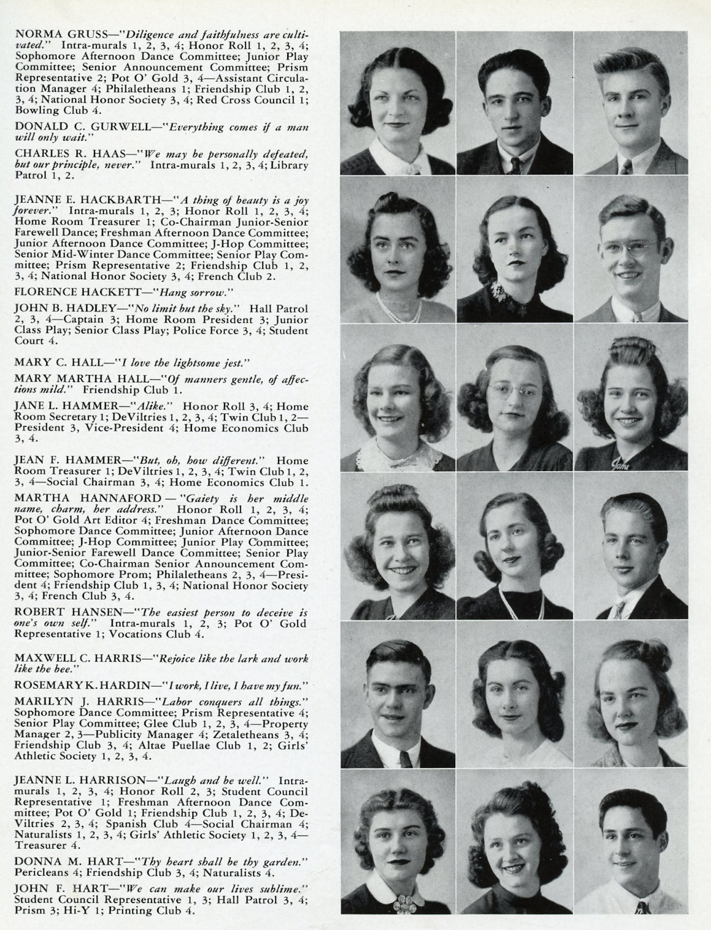 1940 DeVilbiss High School, Page 29: Norma Gruss, Donald C. Gurwell, Charles R. Haas, Jeanne C. Hackbarth, Florence Hackett, John B. Hadley, Mary C. Hall, Mary Martha Hall,