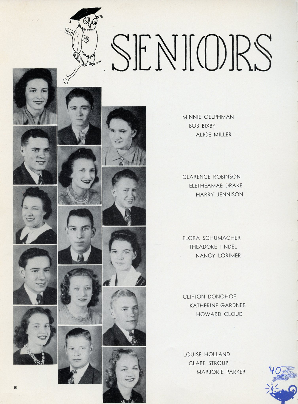 Minnie Gelphman, Bob Bixby, Alice Miller, Clarence Robinson, Eletheamae Drake, Harry Jennison, Flora Schumacher, Theadore Tindel,
