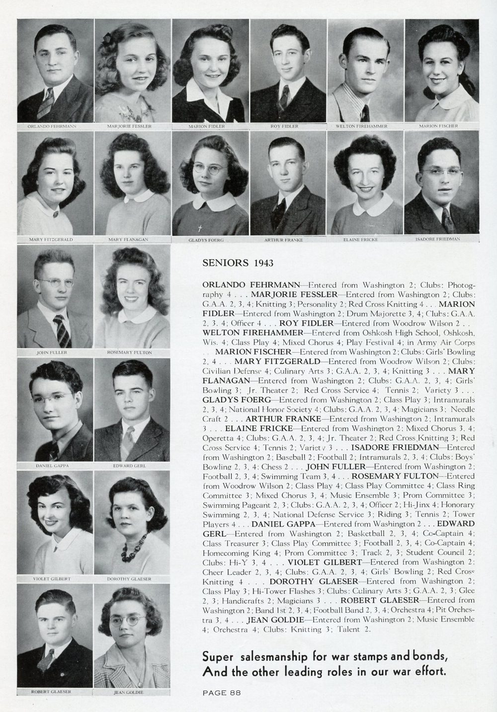 Page 88: Orlando Fehrmann, Marjorie Fessler, Marion Fidler, Roy Fidler, Welton Firehammer, Marion Fischer,