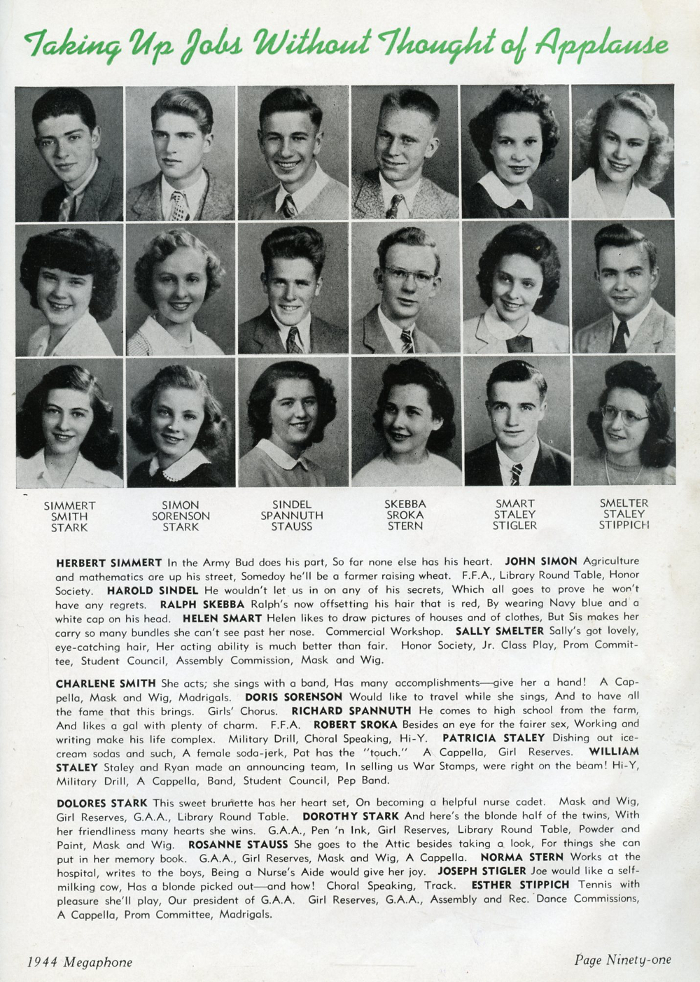 Robert Sroka, Patricia Staley, William Staley, Dolores Stark, Dorothy Stark, Rosanne Stauss, Norma Stern, Joseph Stigler, Esther Stippich.