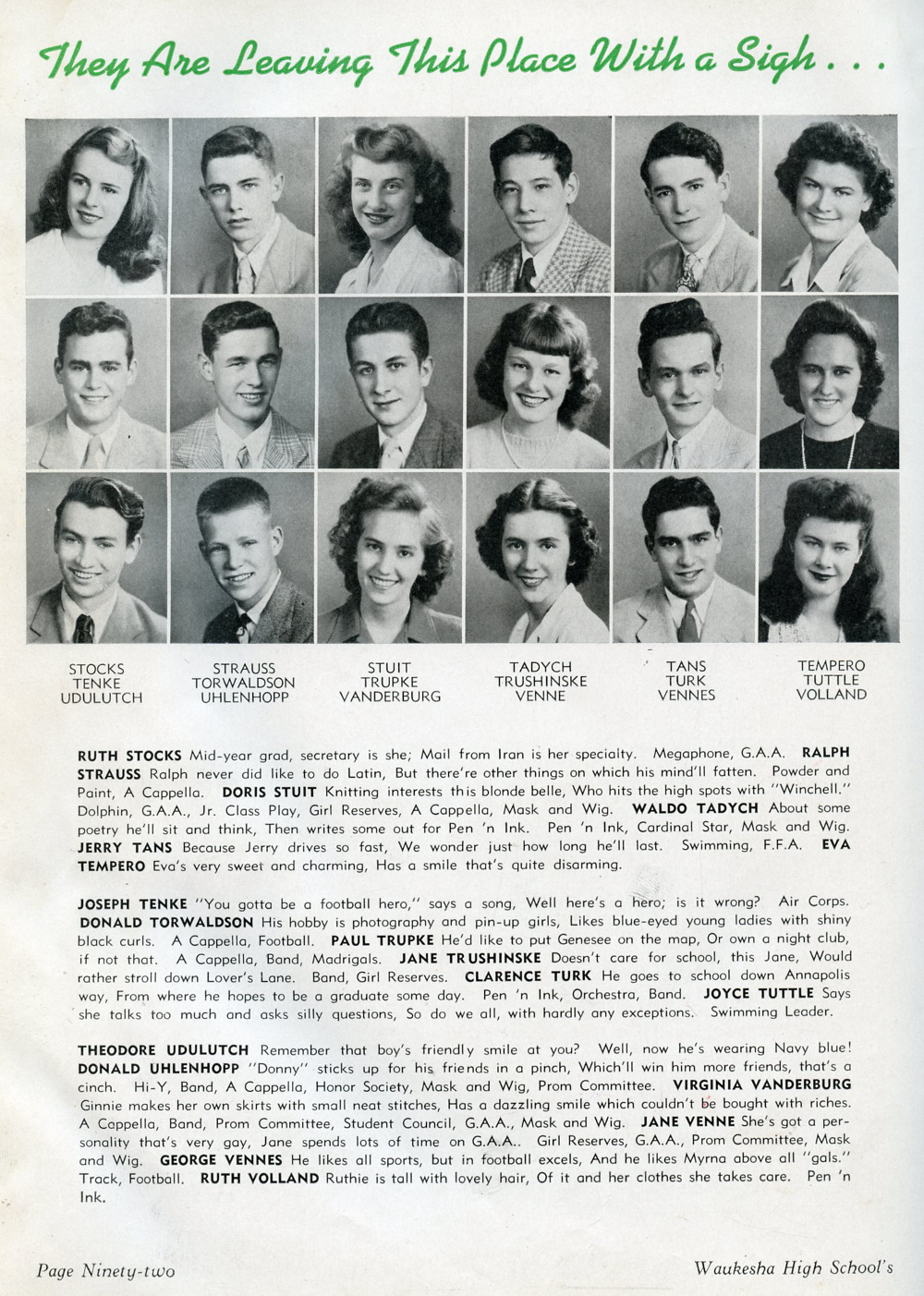 1944 Waukesha High School Yearbook Page 92:
