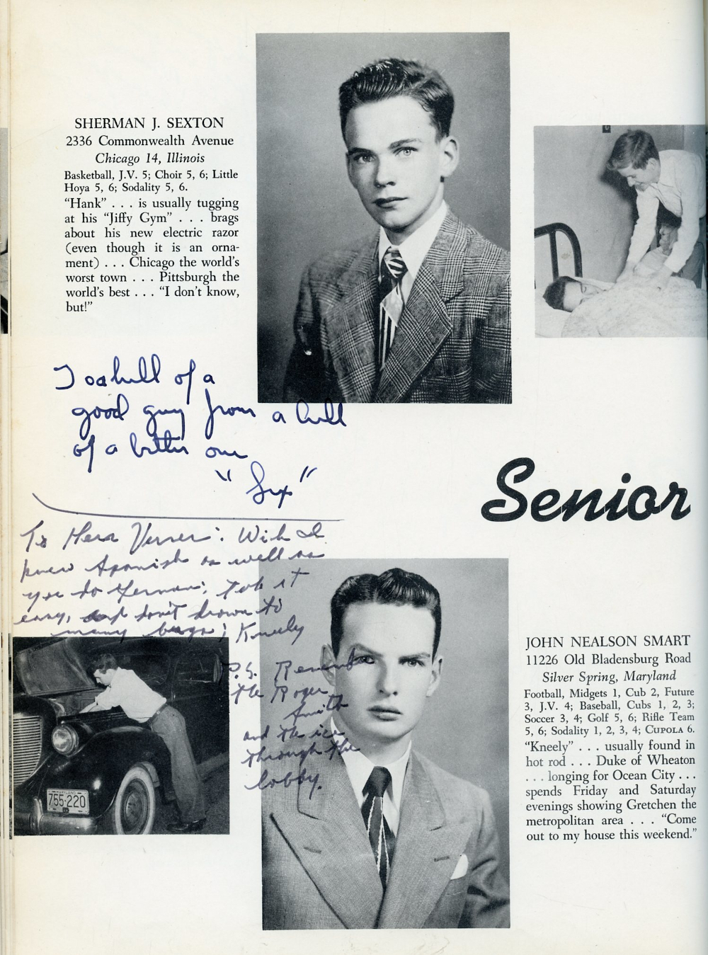 1949 Georgetown Preparatory School, Page 36: Sherman J. Sexton, John Nealson Smart.