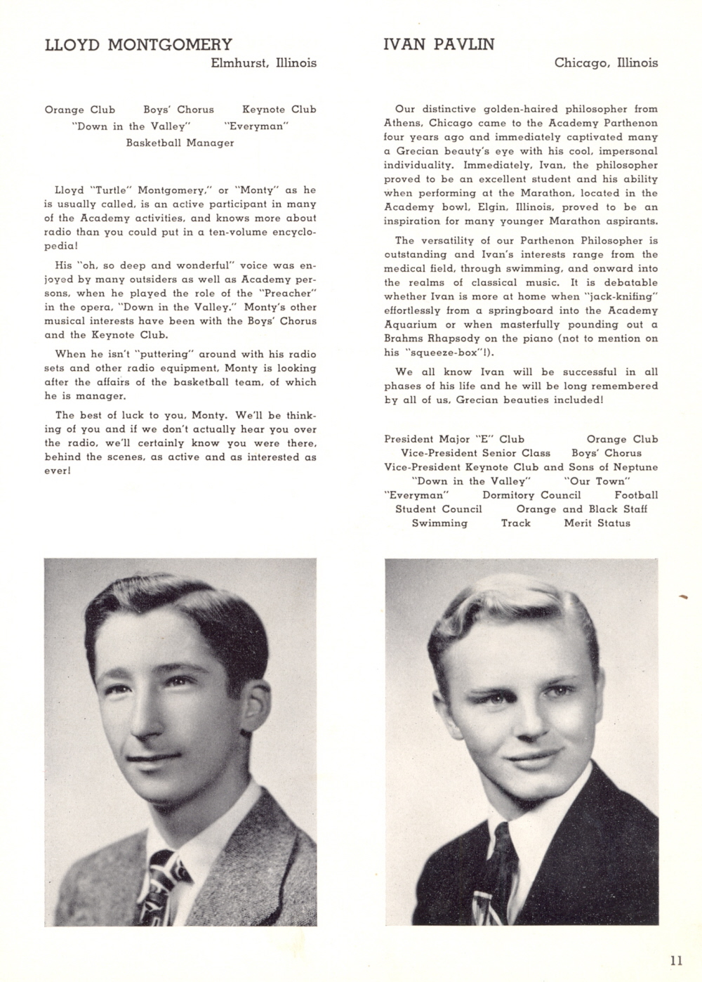 1950 The Elgin Academy, Page 11: Lloyd Montgomery, Ivan Pavlin.