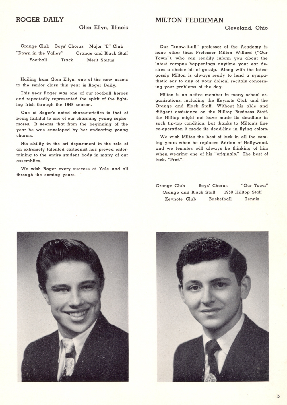 1950 The Elgin Academy, Page 5: Roger Daily, Milton Federman.