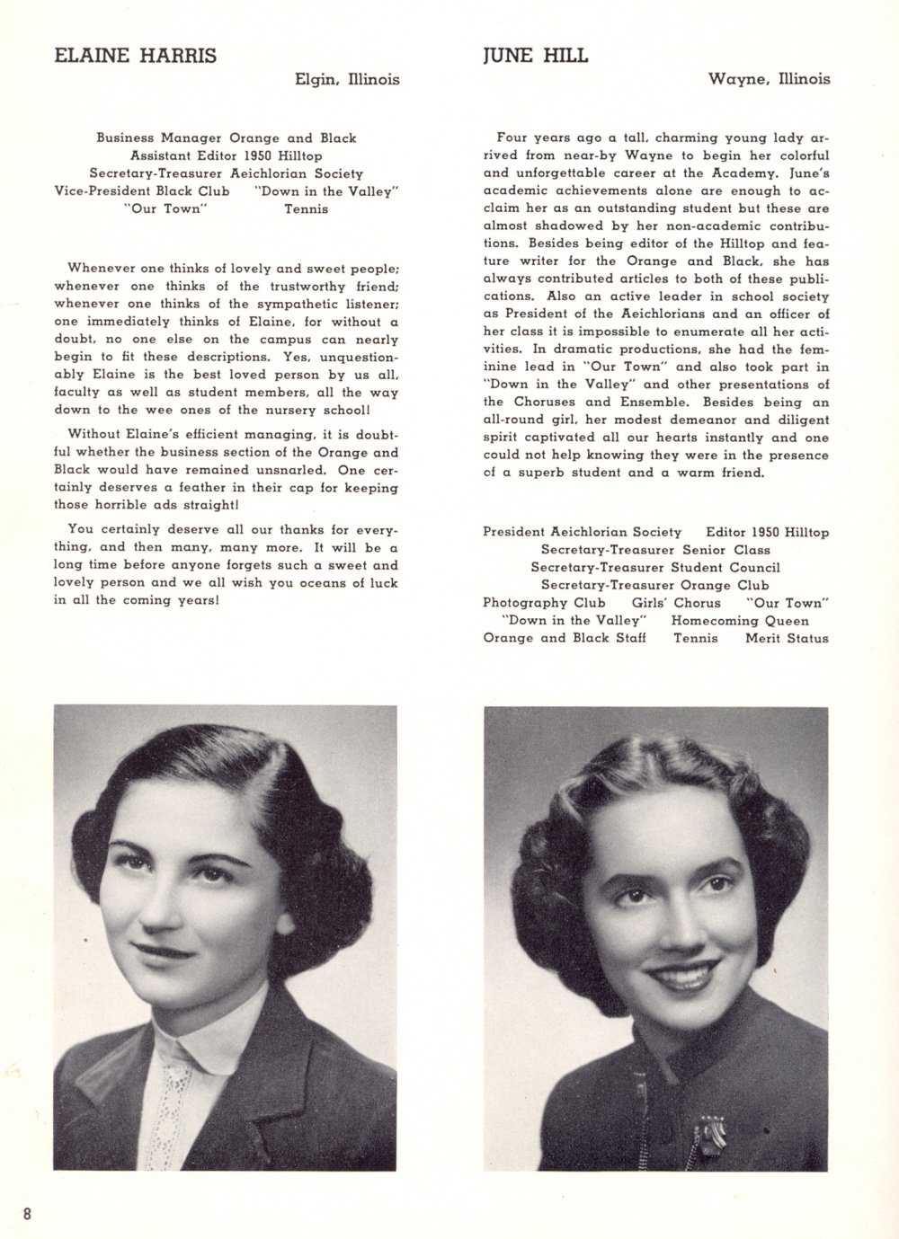1950 The Elgin Academy, Page 8: Elaine Harris, June Hill.