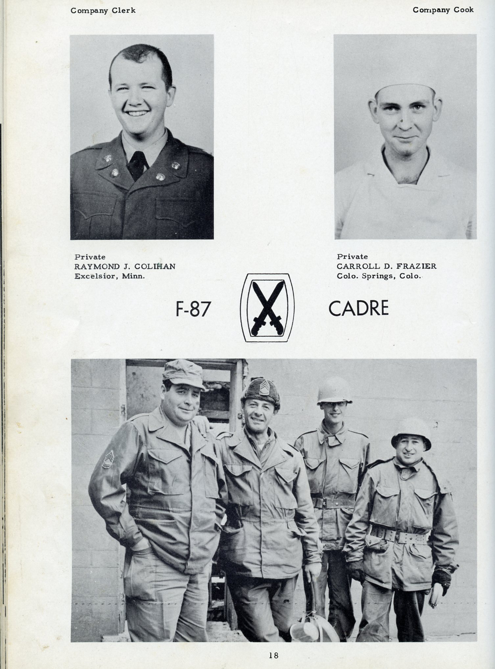 1951 Fort Riley Kansas 10th Infantry Division, Page 18: Private Raymond J. Colihan, Private Carroll D. Frazier.