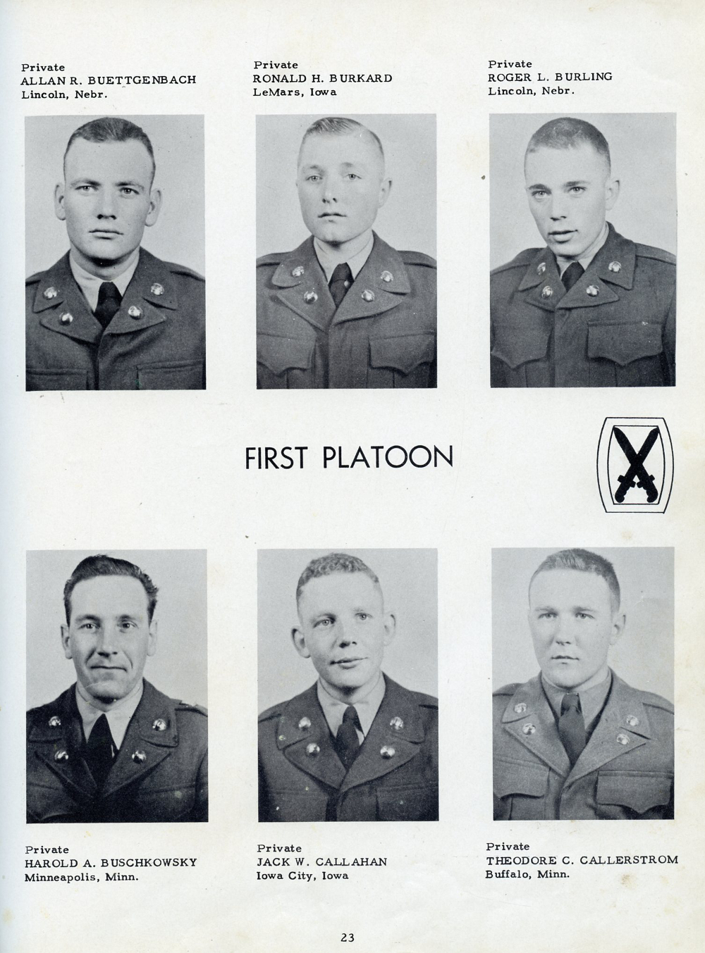 1951 Fort Riley Kansas 10th Infantry Division Company F 87th Infantry, Page 23: Allan R. Buettgenbach, Ronald H. Burkard, Roger L. Burling, Harold A. Buschkowsky, Jack W. Callahan, Theodore C. Callerstrom.