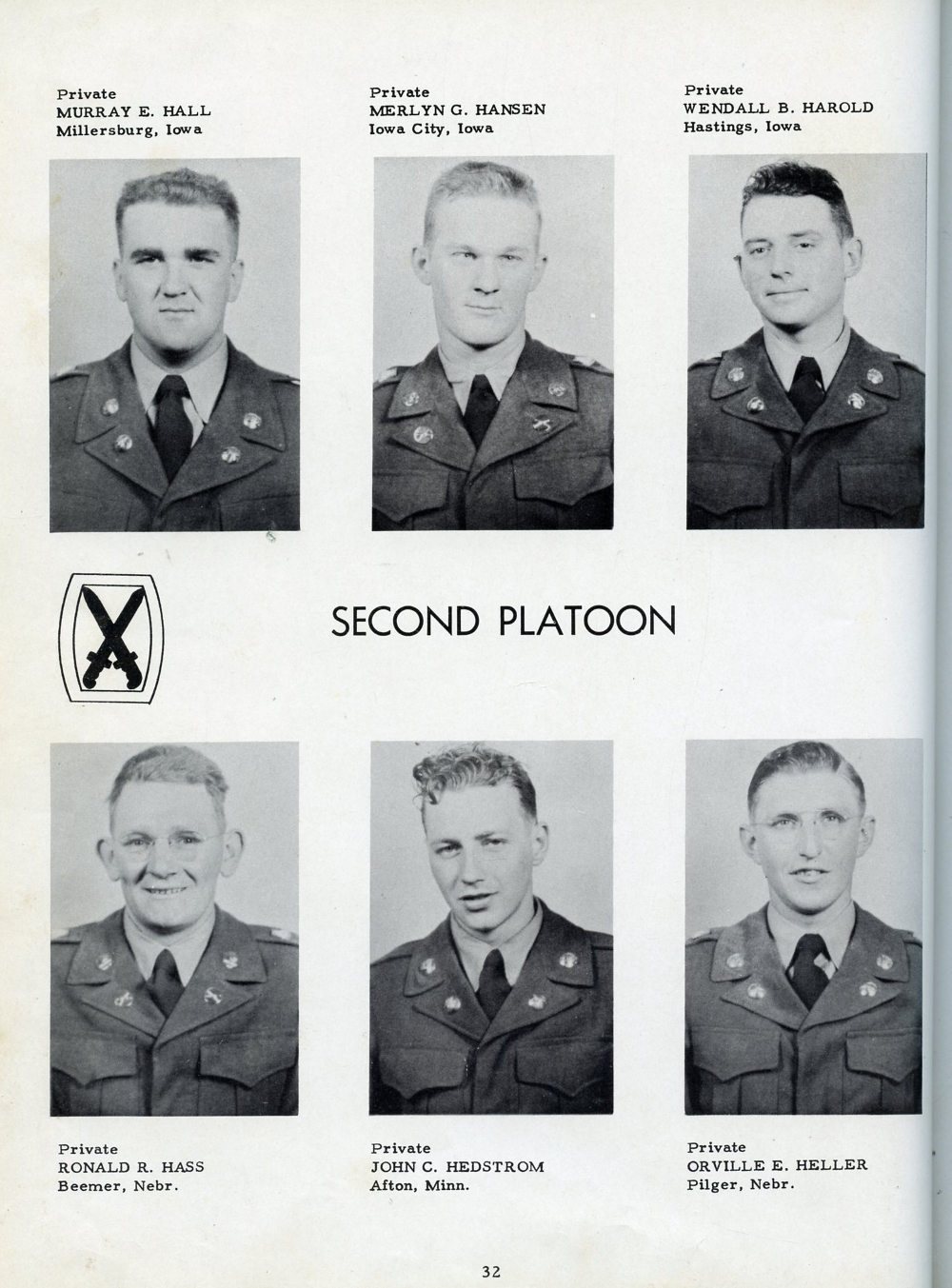 1951 Fort Riley Kansas 10th Infantry Division Company F 87th Infantry, Page 32: Murray E. Hall, Merlyn G. Hansen, Wendall B. Harold, Ronald R. Hass, John C. Hedstrom, Orville E. Heller.