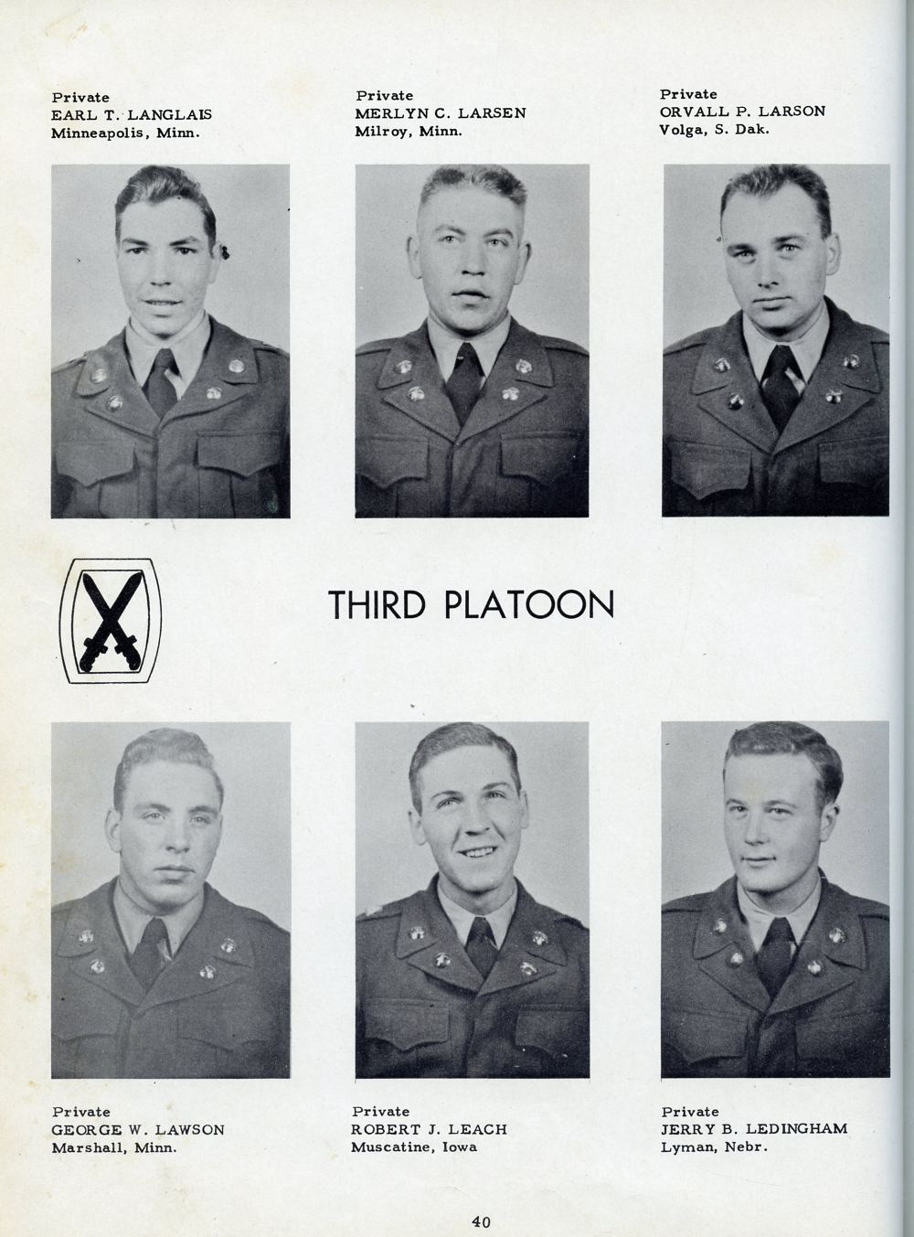 1951 Fort Riley Kansas 10th Infantry Division Company F 87th Infantry, Page 40: Earl T. Langlais, Merlyn C. Larsen, Orvall P. Larson, George W. Larson, Robert J. Leach, Jerry B. Ledingham.