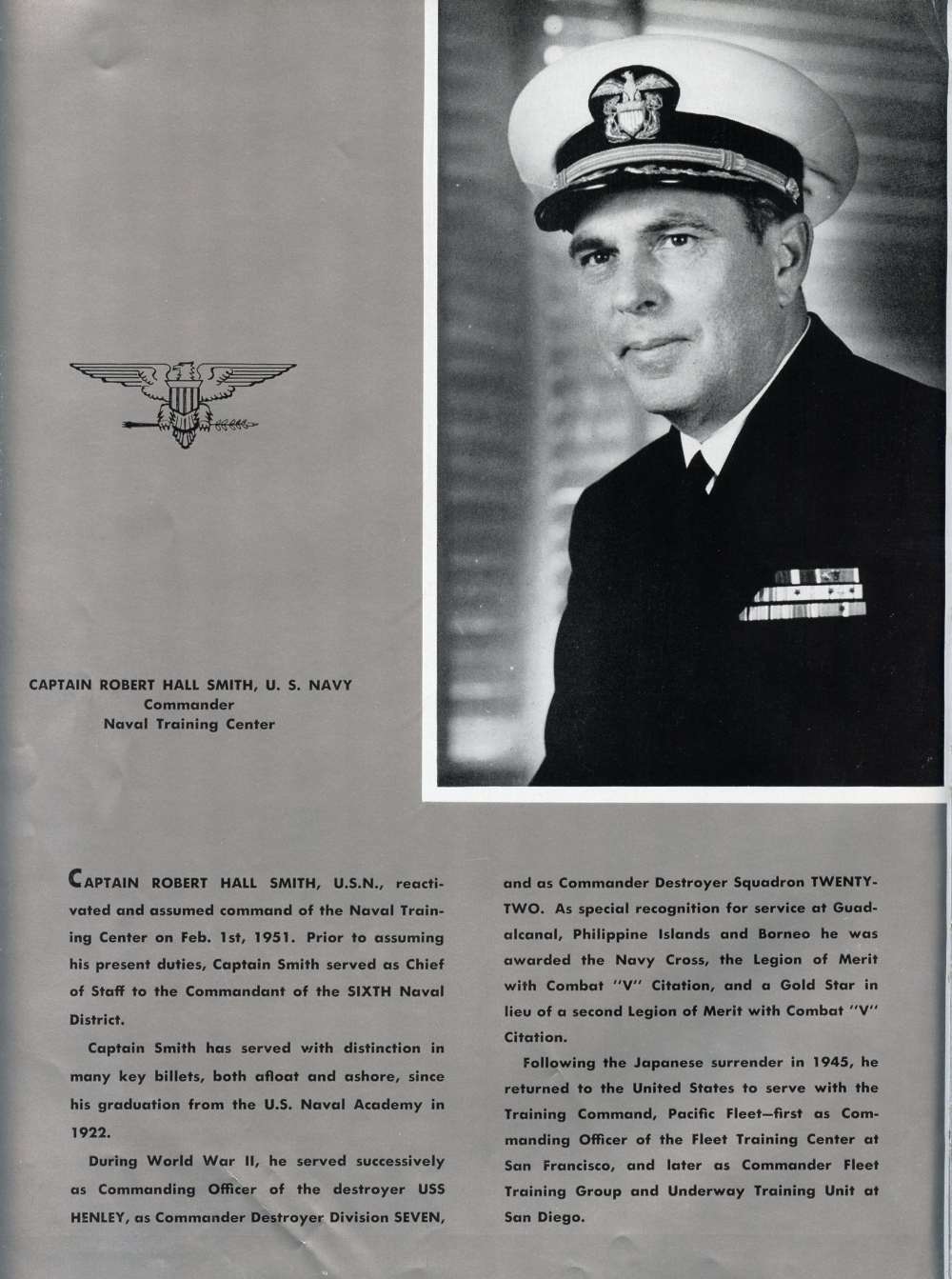 1951 United States Naval Training Center Bainbridge Maryland, Companies 267 and 268, Page 6: Captain Robert Hall Smith, U. S. Navy, Commander, Naval Training Center