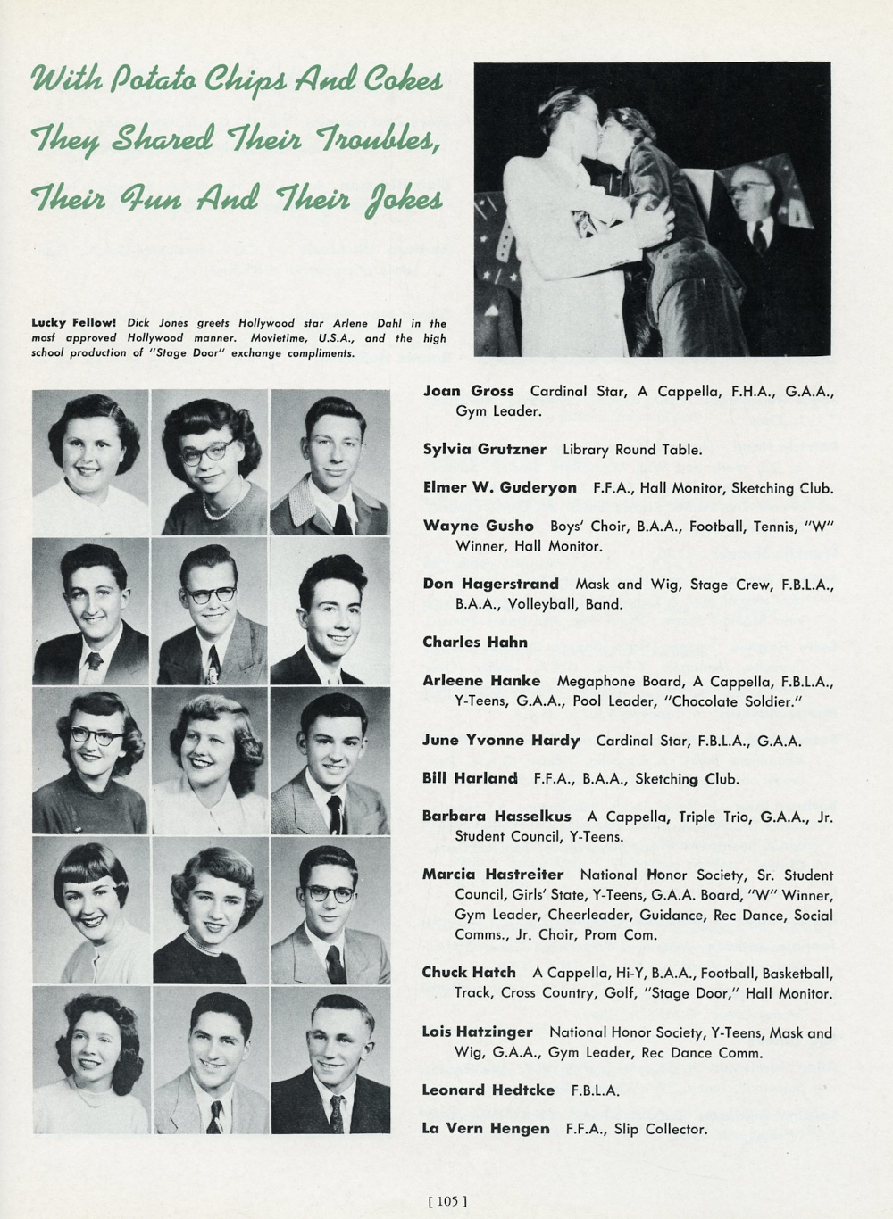 1952 Waukesha High School, Page 105: Joan Gross, Sylvia Grutzner, Elmer W. Guderyon, Wayne Gusho, Don Hagerstrand, Charles Hahn, Arleene Hanke, June Yvonne Hardy, Bill Harland,