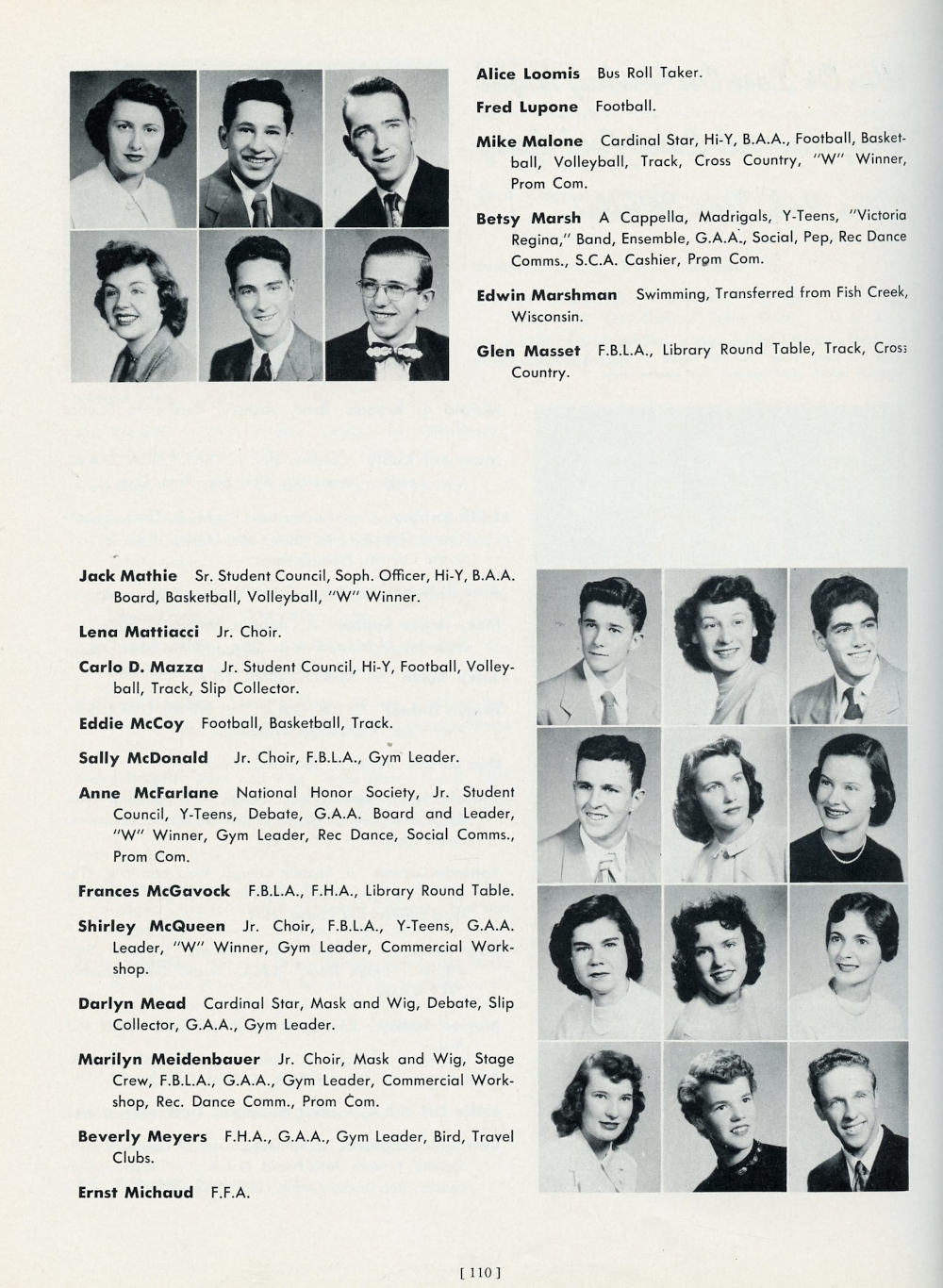 1952 Waukesha High School, Page 110: Alice Loomis, Fred Lupone, Mike Malone, Betsy Marsh, Edwin Marshman, Glen Masset, Jack Mathie, Lena Mattiacci, Carla D. Mazza, Eddie McCoy,
