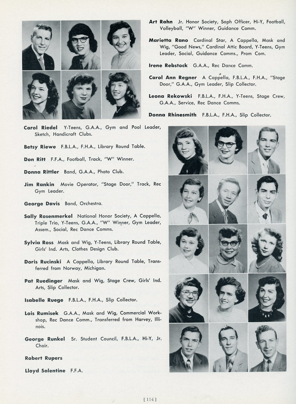 1952 Waukesha High School, Page 114: Art Rahn, Marietta Rano, Irene Rebstock, Carol Ann Regner, Leona Rekowski, Donna Rhinesmith, Carol Reidel, Betsy Riewe, Don Ritt, Donna Rittler,