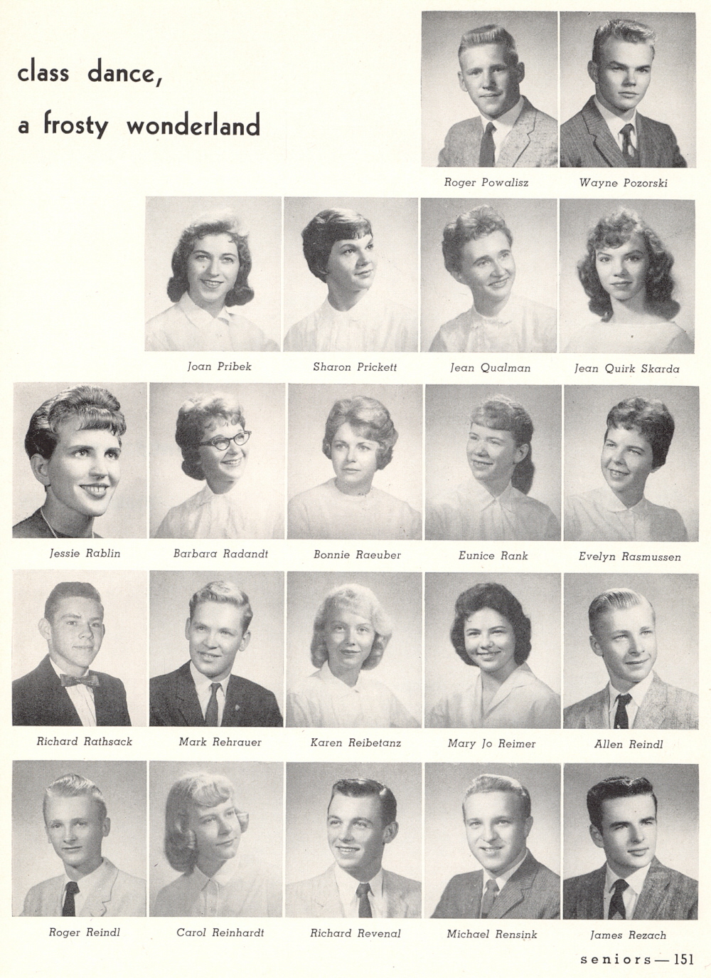 Rablin, Barbara Radandt, Bonnie Raeuber, Eunice Rank, Evelyn Rasmussen,