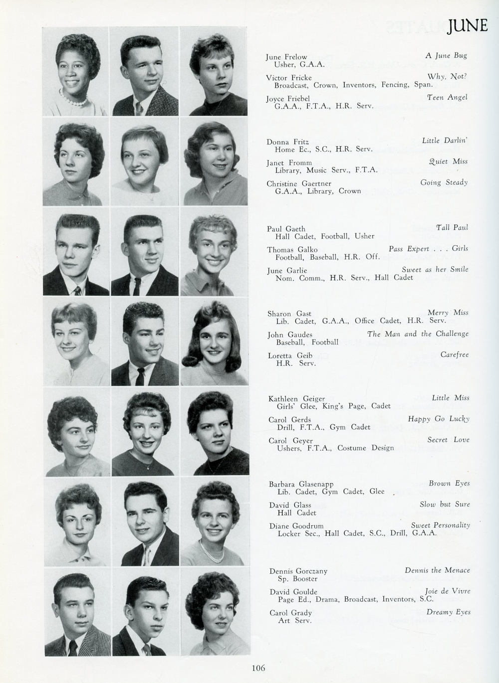 School, Page 106: June Frelow, Victor Fricke, Joyce Friebel, Donna