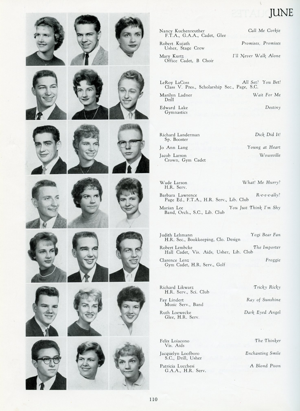 School, Page 110: Nancy Kuchenreuther, Robert Kujath, Mary Kurtz, LeRoy
