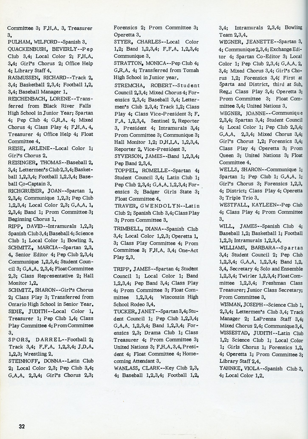 1961 Sparta High School Yearbook Page 32: Senior Directory.