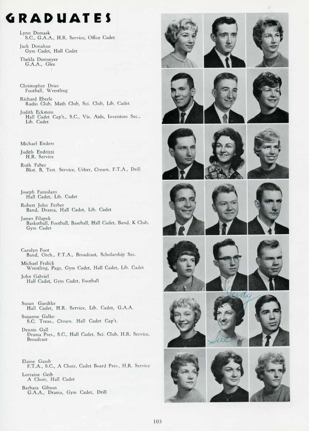 Galko, Dennis Gall, Elaine Gamb, Lorraine Geib, Barbara Gibson.