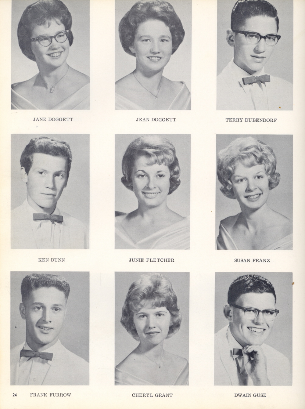 1964 Wy'east High School, Page 24: Jane Doggett, Jean Doggett, Terry Dubendorf, Ken Dunn, Junie Fletcher, Susan Franz, Frank Furrow, Cheryl Grant, Dwain Guse.