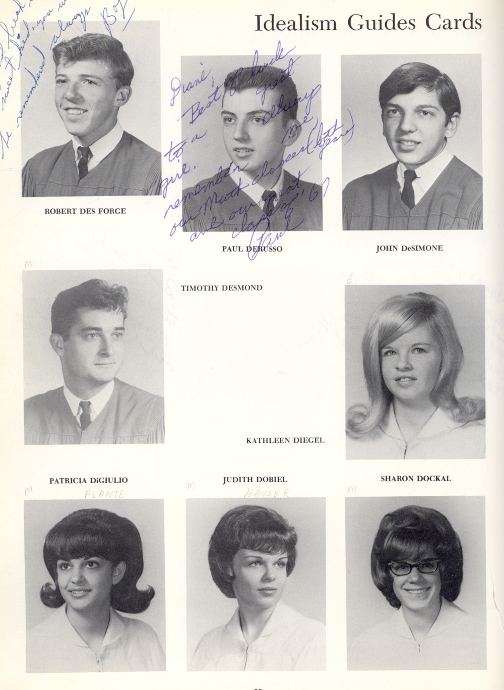 1967 Cardinal McCloskey Memorial High School, Page 88: Robert Des Forge, Paul Derusso, John DeSimone, Timothy Desmond, Kathleen Diegel, Patricia DiGiulio, Judith Dobiel, Sharon Dockal.