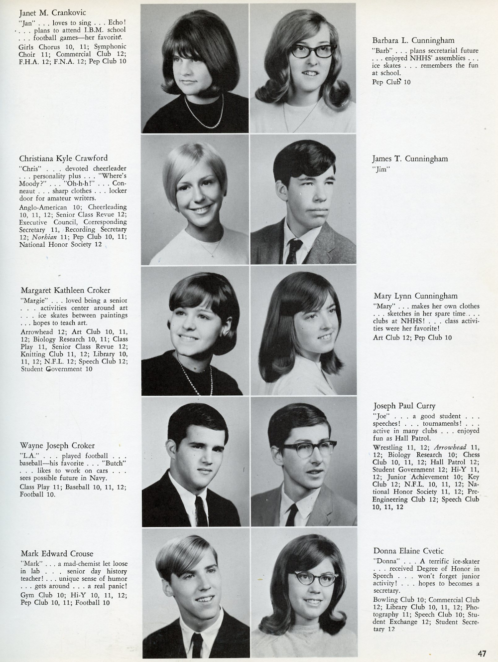 1967 North Hills High School, Page 47: Janet M. Crankovic, Christiana Kyle Crawford, Margaret Kathleen Croker, Wayne Joseph Croker, Mark Edward Crouse,