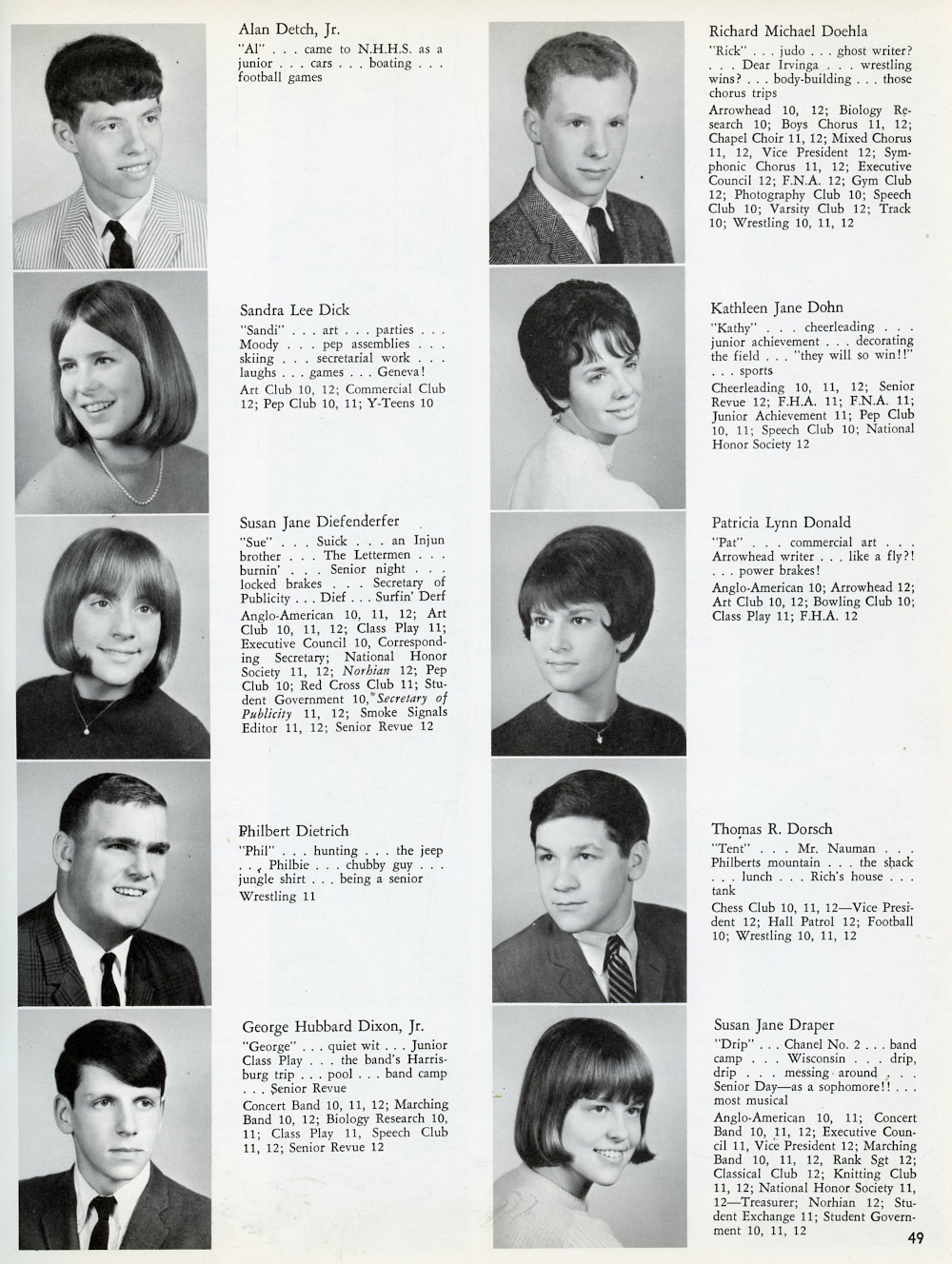 1967 North Hills High School, Page 49: Alan Detch Jr., Sandra Lee Dick, Susan Jane Diefenderfer, Philbert Dietrich, George Hubbard Dixon Jr., Richard Michael Doehla, Kathleen Jane Dohn Patricia Lynn Donald, Thomas R. Dorsch, Susan Jane Draper.