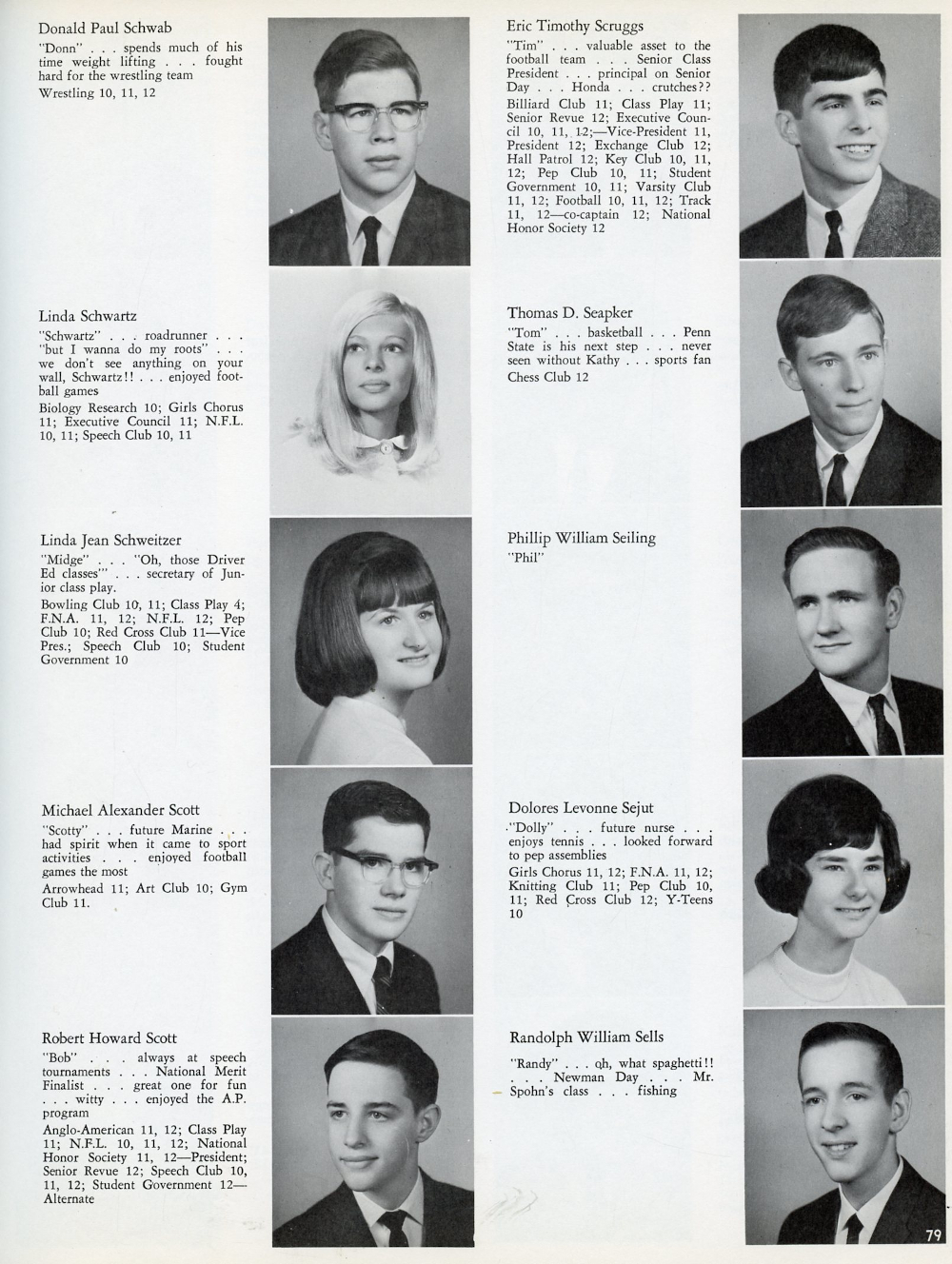 1967 North Hills High School, Page 79: Donald Paul Schwab, Linda Schwartz, Linda Jean Schweitzer, Michael Alexander Scott, Robert Howard Scott,