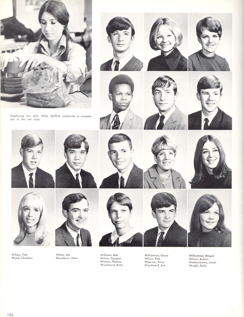 1969 Ulysses S. Grant High School, Page 106: Bob Williams, Diane Williamson, Megan Williamson, Douglas Wilson, Rick Wilson, Robert Wilson, Tom Wilson, Jim Wiltse, Thomas Winters, Terry Woerner, Jenni Wolstenholme, Christine Wood, Peter Woodburn, Betty Woodward, Jon Woodward, Emily Wright.