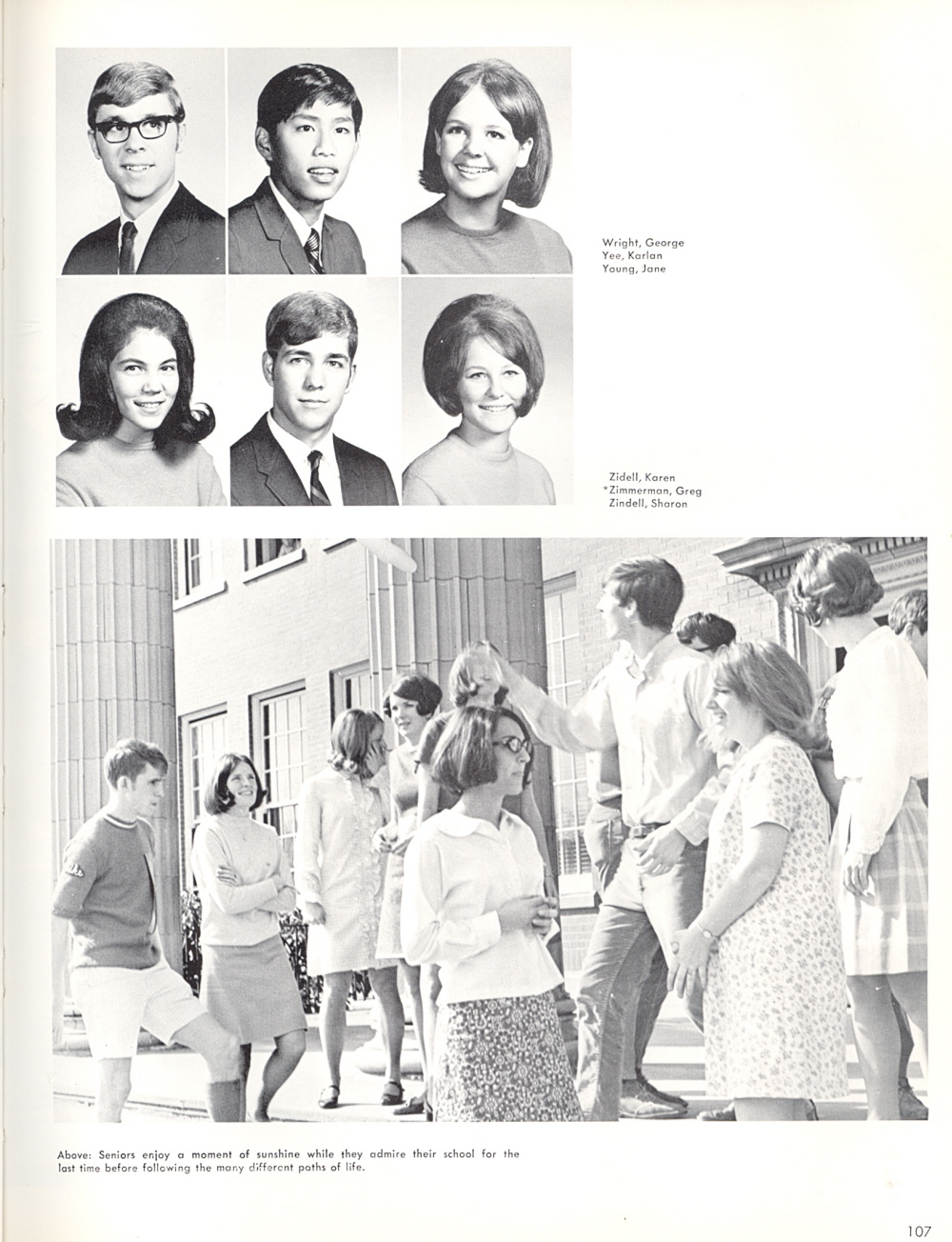 1969 Ulysses S. Grant High School, Page 107: George Wright, Karlan Yee, Jane Young, Karen Zidell, Greg Zimmerman, Sharon Zindell.