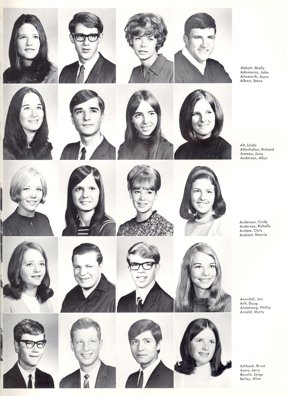 1969 Ulysses S. Grant High School, Page 69: Shelly Abbott, John Adamovics, Joyce Ainsworth, Steve Albert, Linda Alt, Richard Altenhofan, June Ammon, Allyn Anderson, Cindy Anderson, Richelle Anderson, Chris Anslow, Sherrie Arehart, Jan Arendell, Doug Arlt, Phillip Armstrong, Marty Arnold, Bruce Ashback, Jerry Ayers, Jorge Bacelis, Alice Bailey.