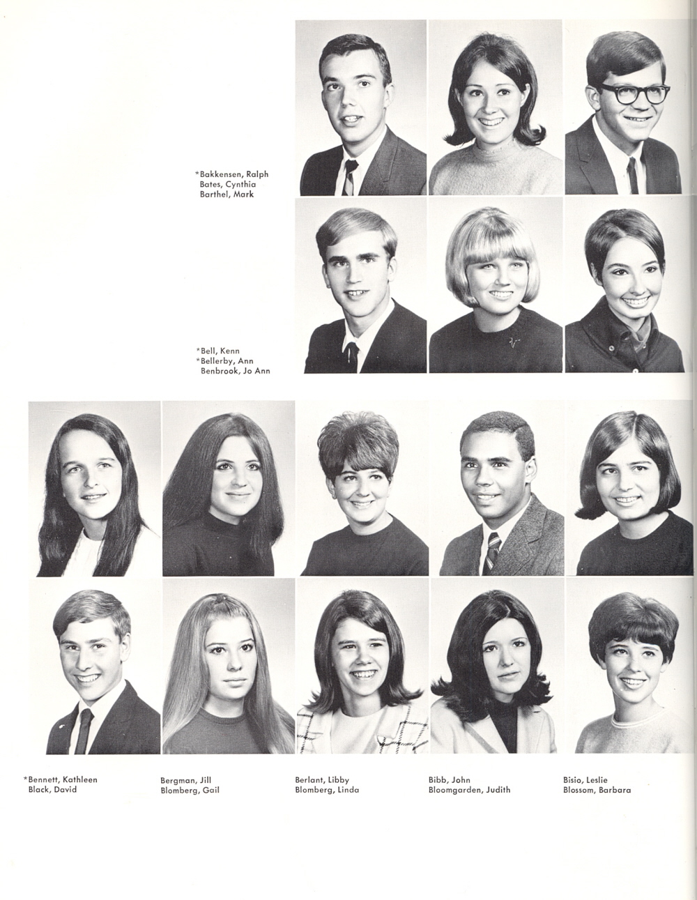 1969 Ulysses S. Grant High School, Page 70: Ralph Bakkensen, Cynthia Bates, Mark Marthel, Kenn Bell, Ann Bellerby, Jo Ann Benbrook, Kathleen Bennett, David Black, Jill Bergman, Gail Blomberg, Libby Berlant, Linda Blomberg, John Bibb, Judith Bloomgarden, Leslie Bisio, Barbara Blossom.