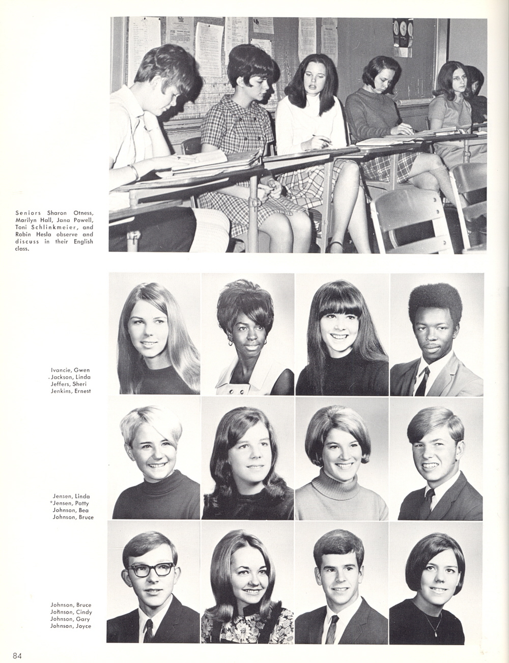 1969 Ulysses S. Grant High School, Page 84: Gwen Ivancie, Linda Jackson, Sheri Jeffers, Ernest Jenkins, Linda Jensen, Patty Jensen, Bea Johnson, Bruce Johnson, Cindy Johnson, Gary Johnson, Joyce Johnson.
