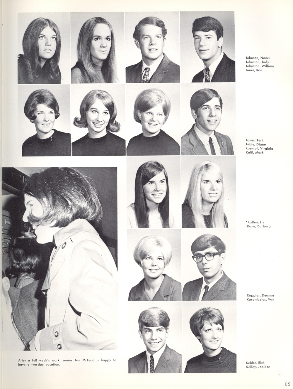 1969 Ulysses S. Grant High School, Page 85: Nanci Johnson, Judy Johnston, William Johnston, Ron Jones, Teri Jones, Diane Jubie, Virginia Kaempf, Mark Kalil, Liz Kallen, Barbara Kane, Deanne Kappler, Van Karambelas, Rick Kebbe, Janiece Kelley.