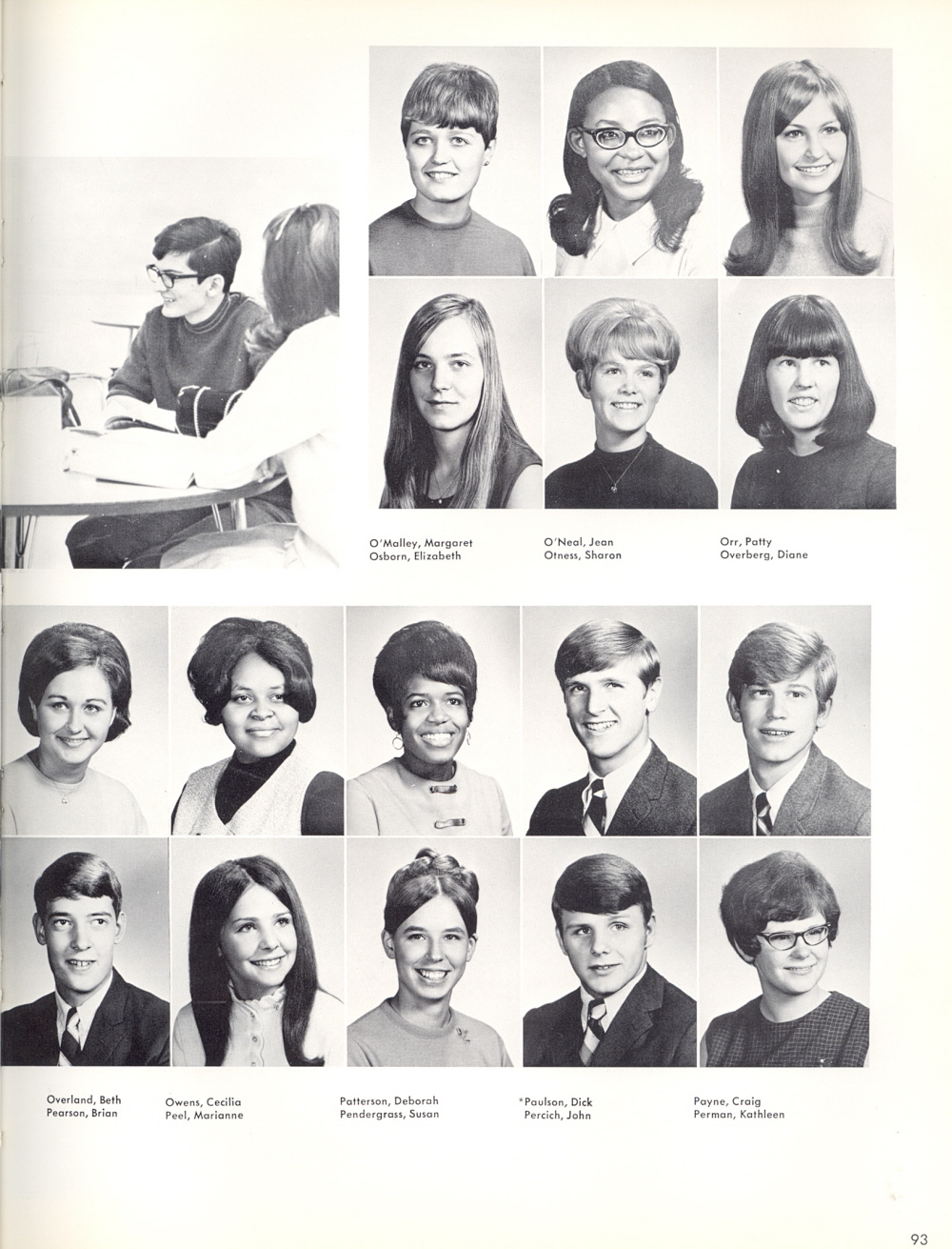 1969 Ulysses S. Grant High School, Page 93: Margaret O'Malley, Jean O'Neal, Patty Orr, Elizabeth Osborn, Sharon Otness, Diane Overberg, Beth Overland, Cecilia Owens, Deborah Patterson, Dick Paulson, Craig Payne, Brian Pearson, Marianne Peel, Susan Pendergrass, John Percich, Kathleen Perman.