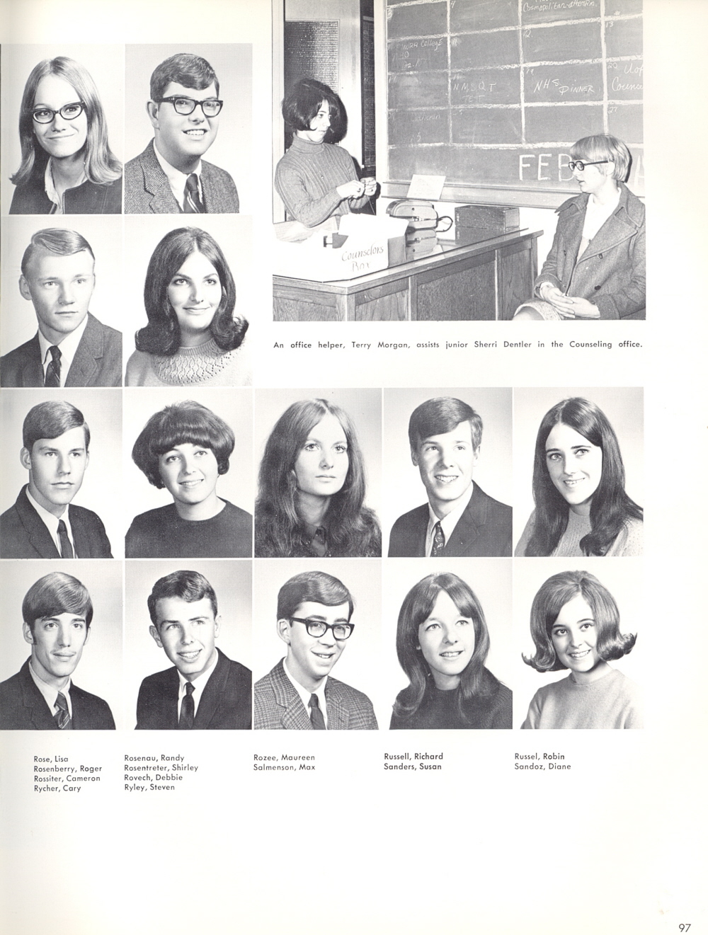 1969 Ulysses S. Grant High School, Page 97: Lisa Rose, Randy Rosenaul, Maureen Rozee, Richard Russell, Robin Russel, Roger Rosenberry, Shirley Rosentreter, Cameron Rossiter, Debbie Rovech, Cary Rycher, Steven Ryley, Max Salmenson, Susan Sanders, Diane Sandoz.