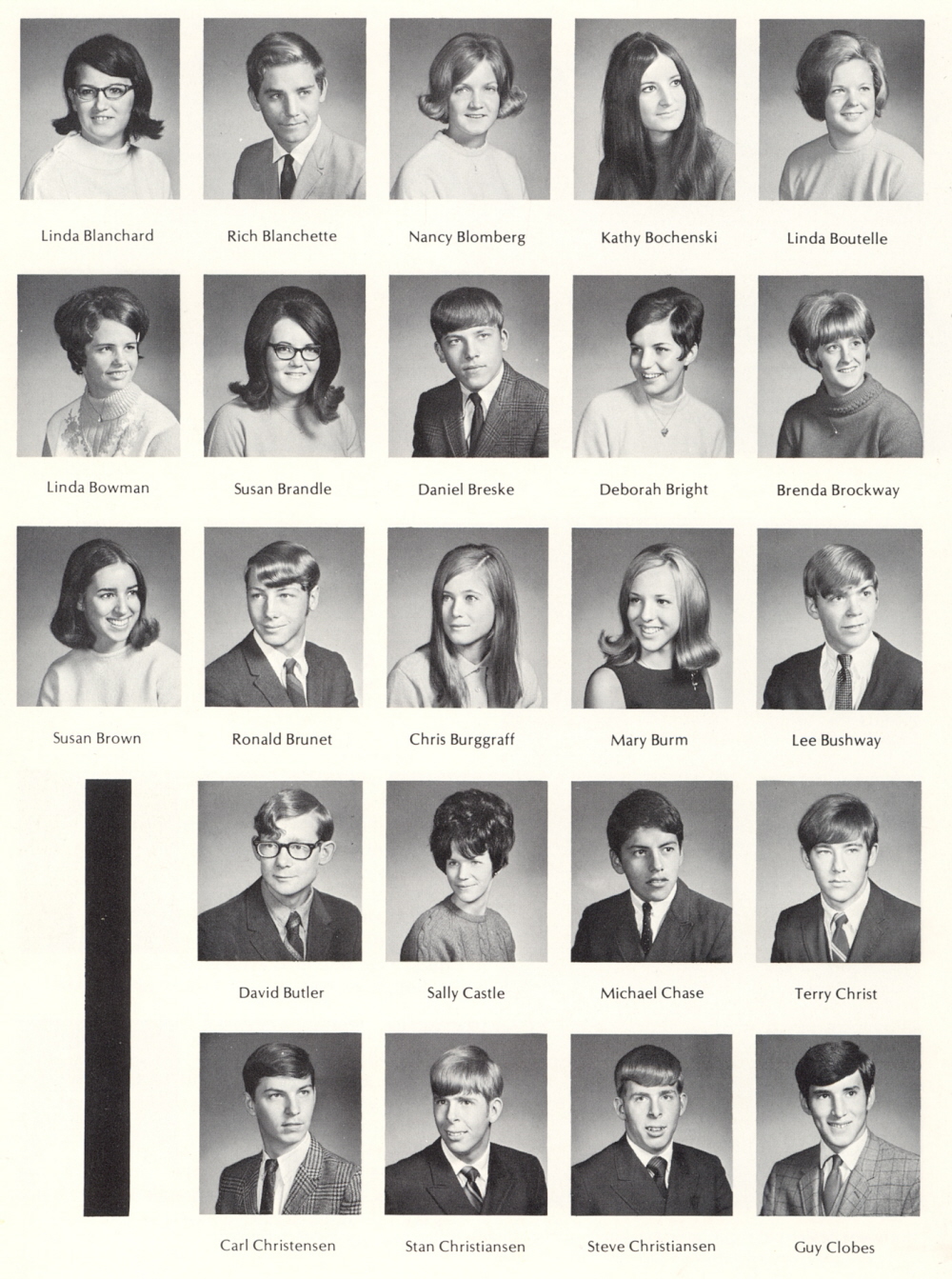1970 Irondale High School, Page 26: Linda Blanchard, Rick Blanchette, Nancy Blomberg, Kathy Bochenski, Linda Boutelle, Linda Bowman, Susan Brandle, Daniel Breske, Deborah Bright, Brenda Brockway, Susan Brown, Ronald Brunet, Chris Burggraff, Mary Burm, Lee Bushway, David Butler, Sally Castle, Michael Chase, Terri Christ, Carl Christensen, Stan Christiansen, Steve Christiansen, Guy Clobes.