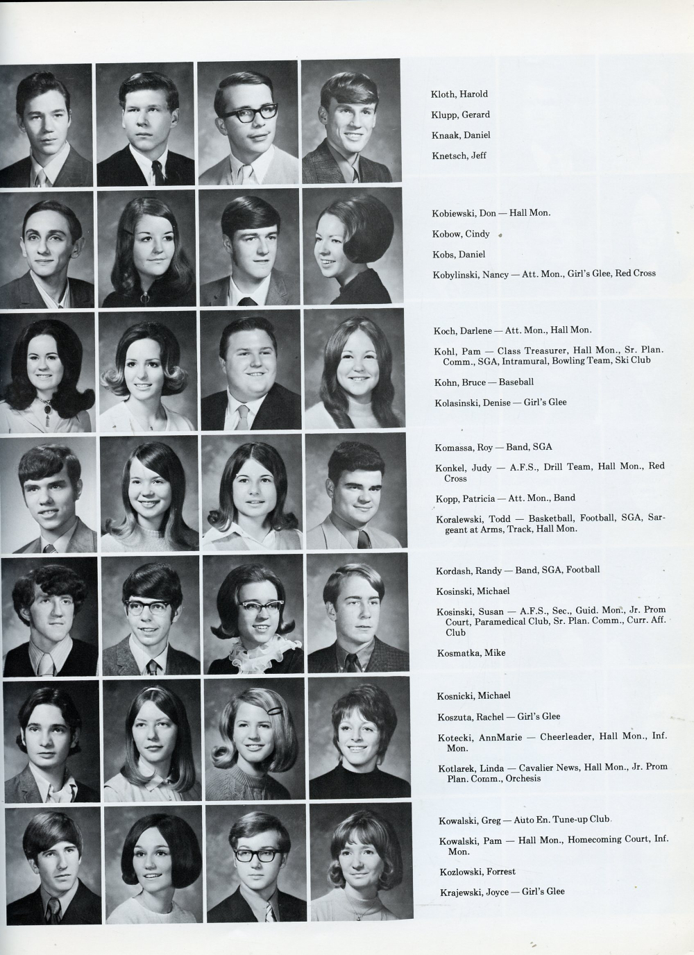 Pam Kohl, Bruce Kohn, Denise Kolasinski, Roy Komassa, Judy Konkel, Patricia Kopp, Todd Koralewski, Randy Kordash, Michael Kosinski, Susan Kosinski, Mike Kosmatka, Michael Kosnicki,