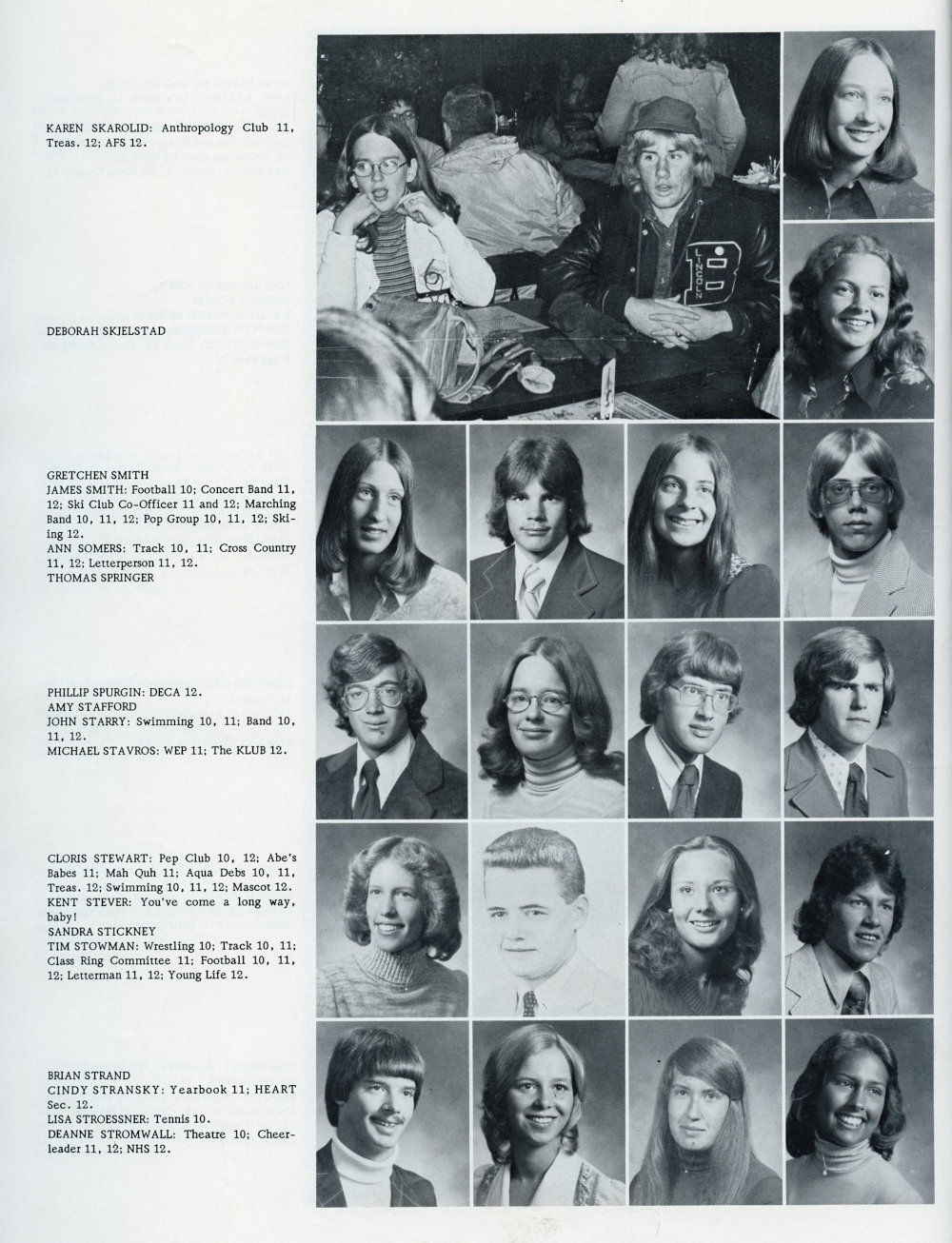 Karen Skarolid, Deborah Skjelstad, Gretchen Smith, James Smith, Ann Somers, Thomas Springer, Phillip Spurgin, Amy Stafford, John Starry,