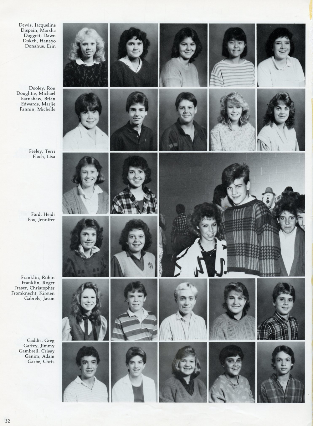 Marjie Edwards, Michelle Fannin, Terri Feeley, Lisa Floch, Heidi Ford, Jennifer Fox, Robin Franklin, Roger Franklin, Christopher Fraser, Kirsten Fromknecht, Jason Gabrels,
