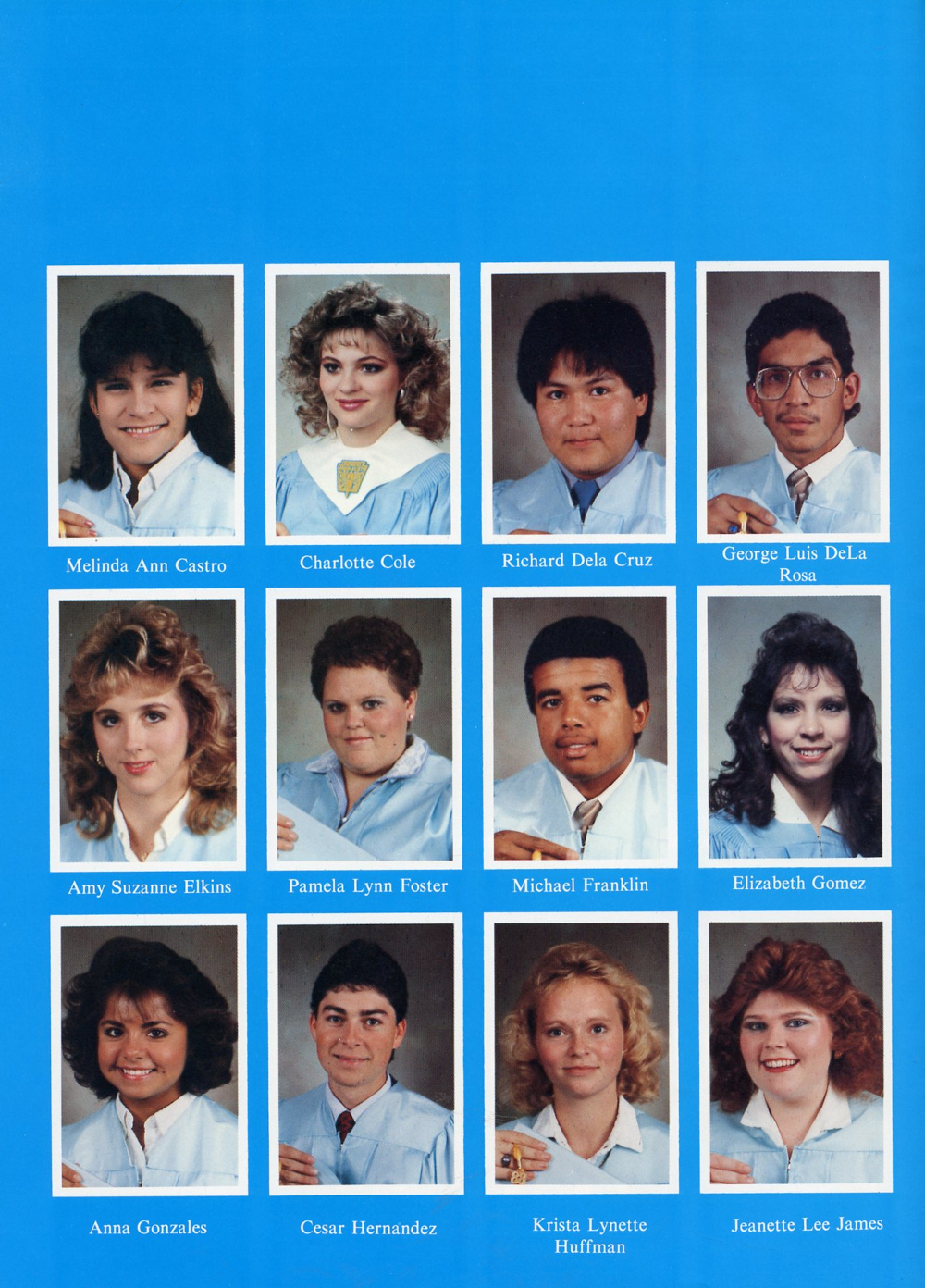 1988 Reagan County High School, Page 12: Melinda Ann Castro, Charlotte Cole, Richard Dela Cruz, George Luis DeLa Rosa, Amy Suzanne Elkins, Pamela Lynn Foster, Michael Franklin,
